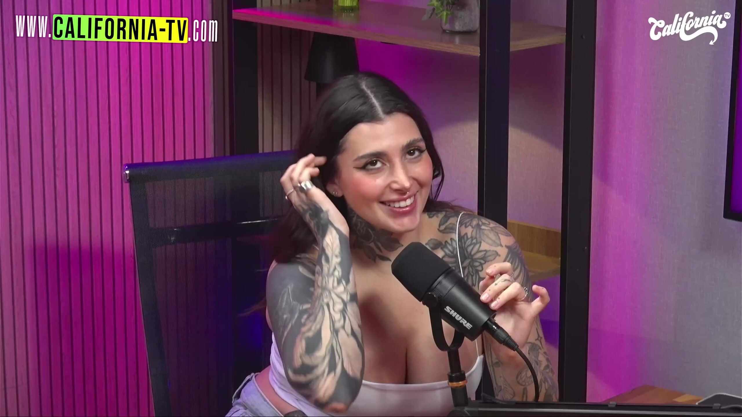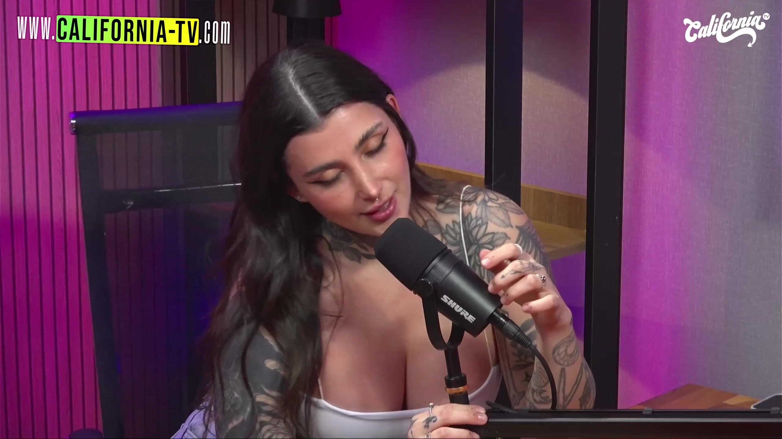 Charismatic host makes chicks demonstrate their boobies during a live TV display and likes doing his job