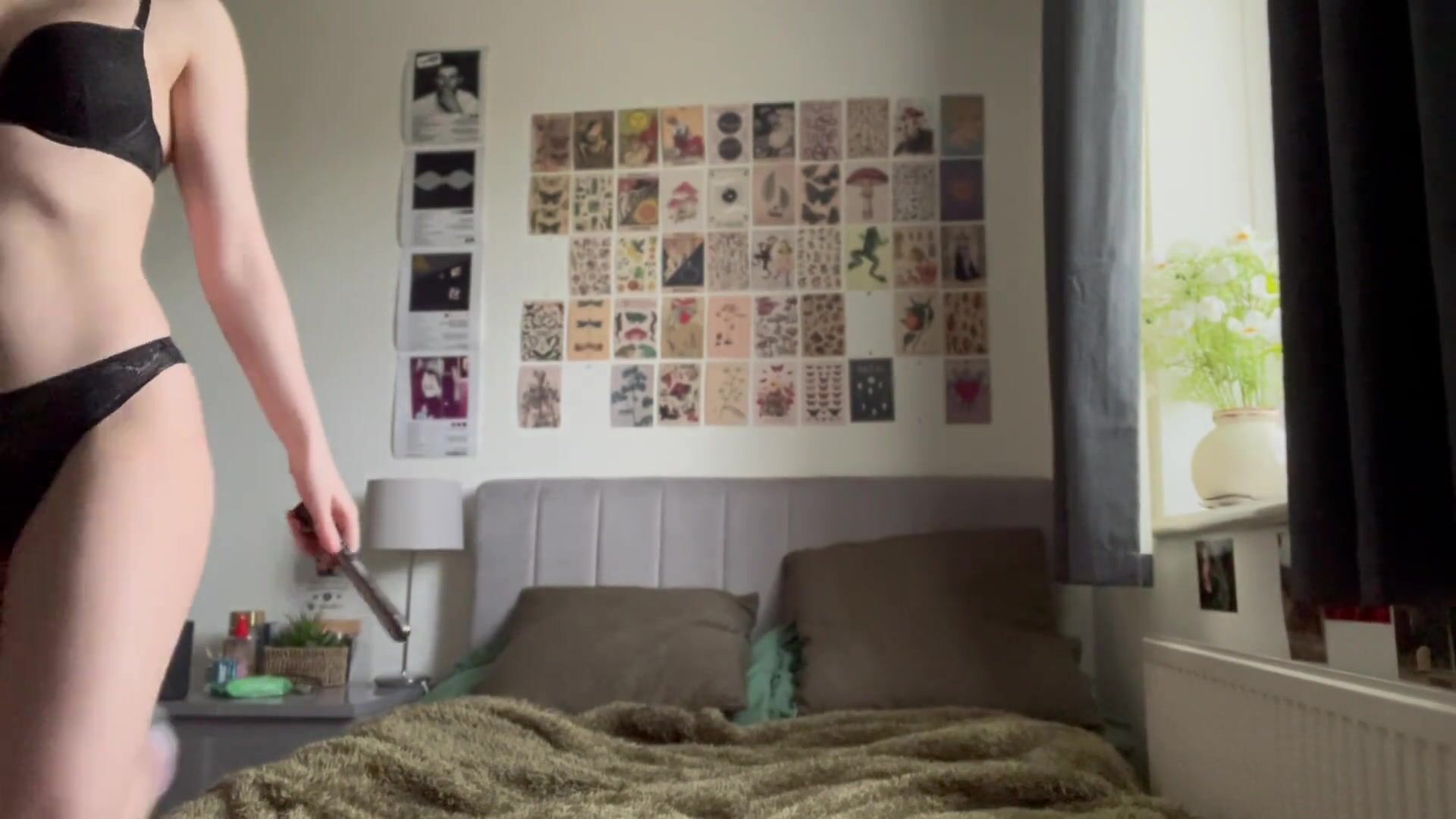 Emily Willis in cherry white underwear peels off down and screws her fuckbox until she shoots a load
