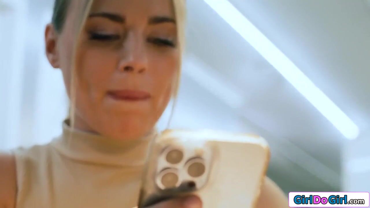 Platinum-Blonde sapphic screws homie with strap on dildo