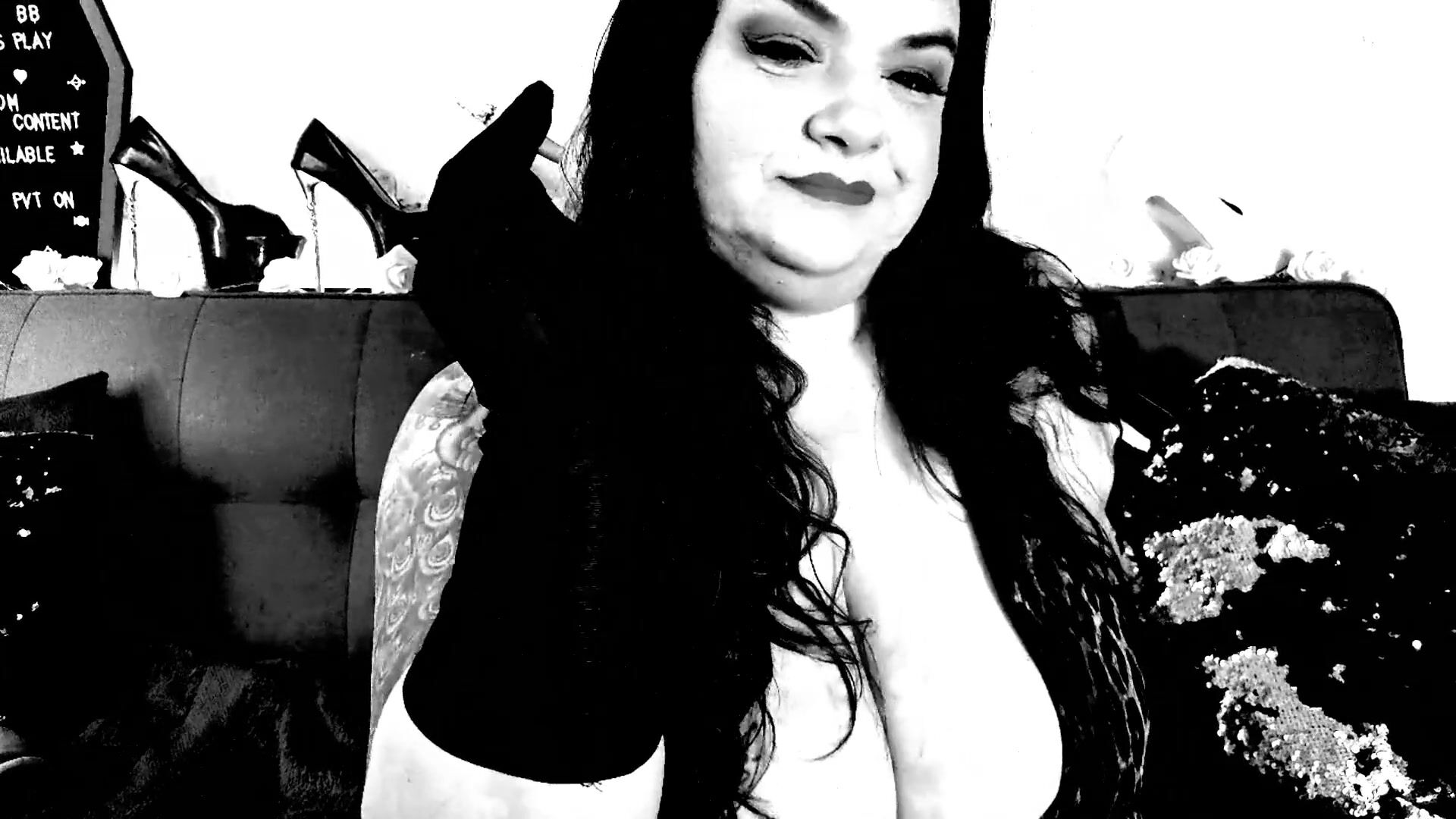 There is nothing I love more than smoking, and I want you to smoke with me. Well, technically smoke two ciggies with me, one with a true smoke gimp who wants nothing more than to be my ash-stand....and with me and let me stroke your bone into climax with a countdown but you get the idea. This is a black and white video, highly retro themed like I idolize. I am dressed in black elbow length mittens and smoke two ciggies, with 1 of them containing sucky-sucky, hand-job, and tit fuckin', and the other is with the human ash-stand. Glad jerking, edging, and gooning men! #blackandwhite #smokefetish #plumper #smoke #hj #tittyfucking #smoking #bigboobs #bignipples #spectacular #mittens #glovedhandjob
