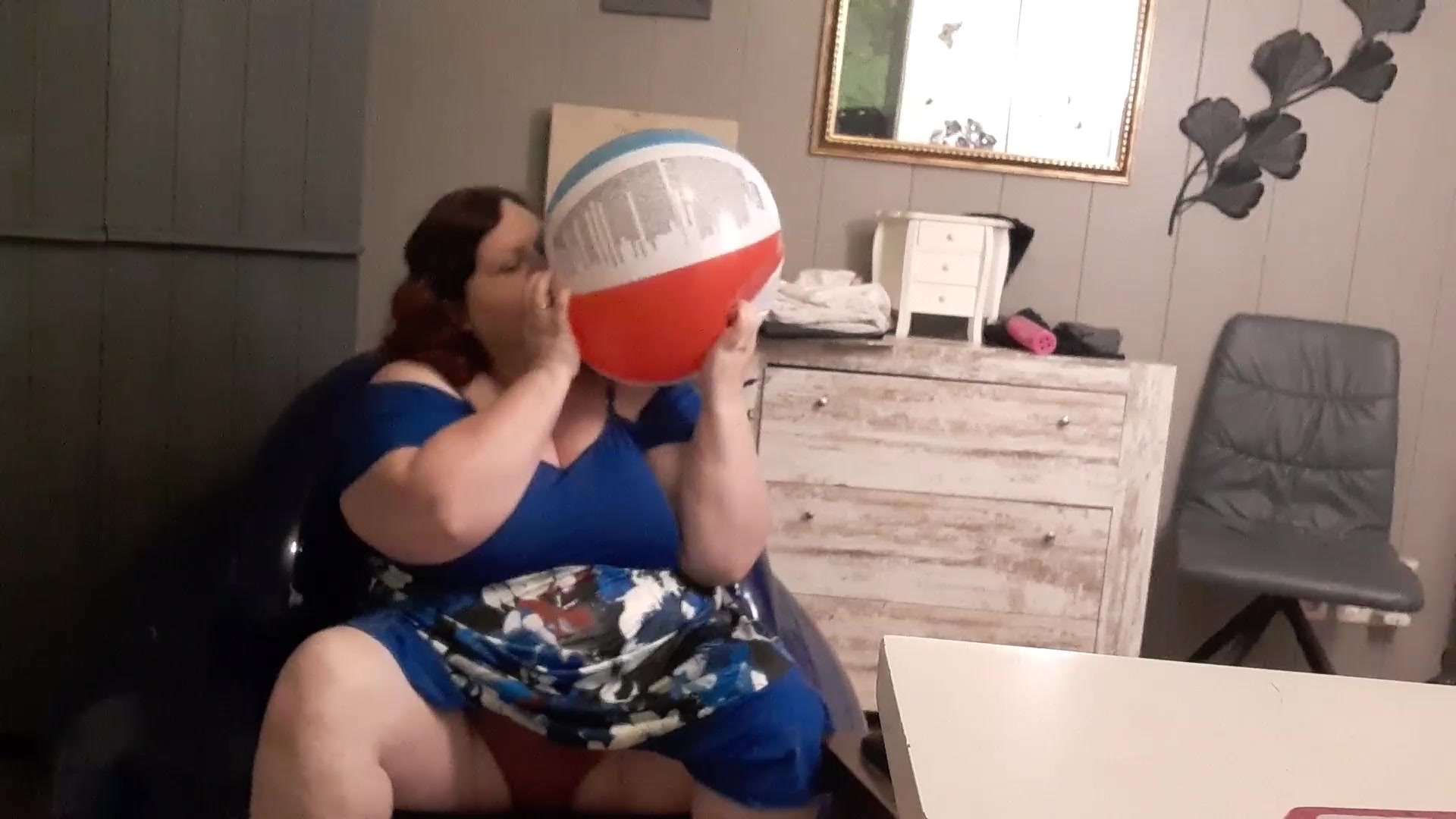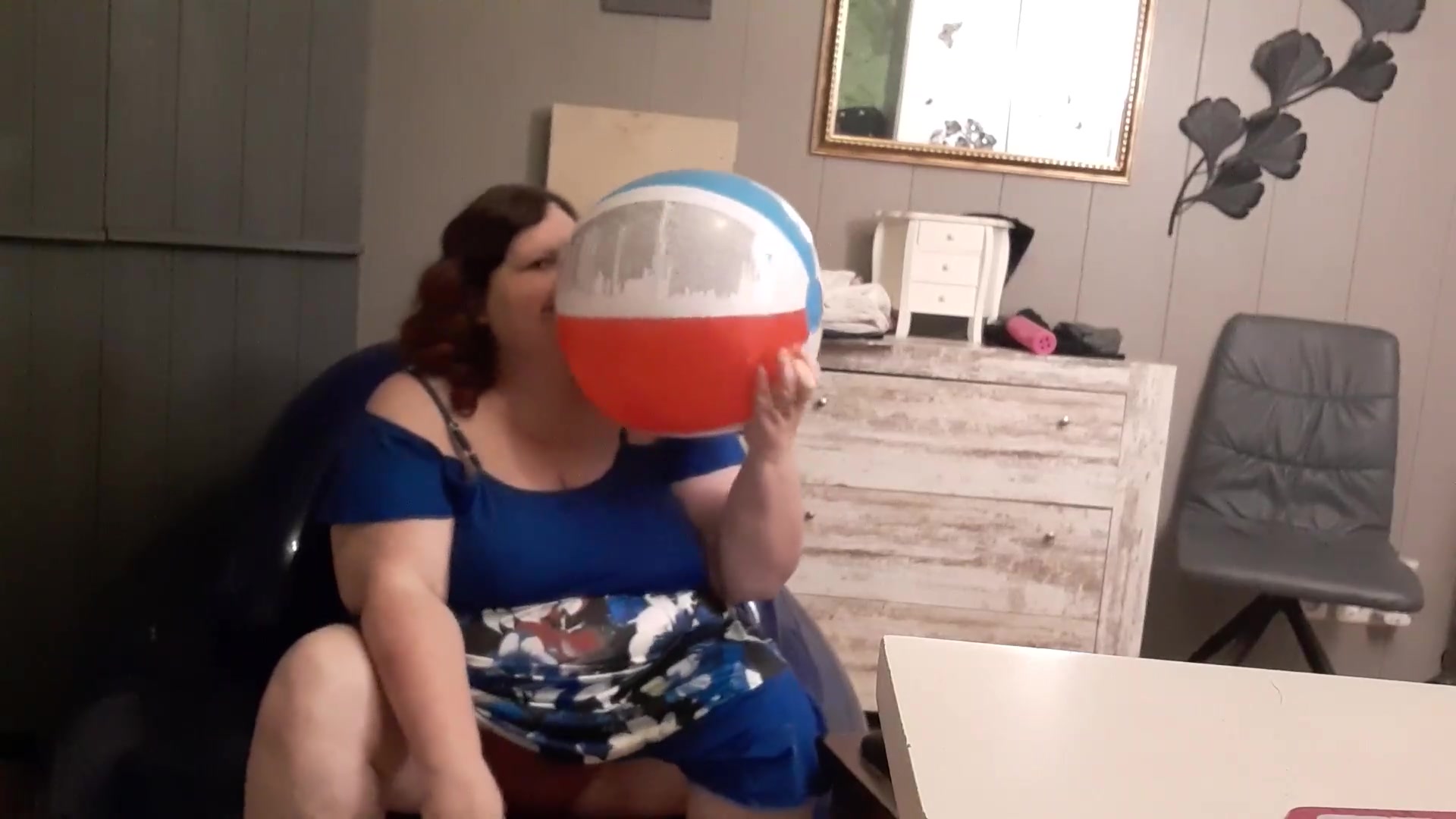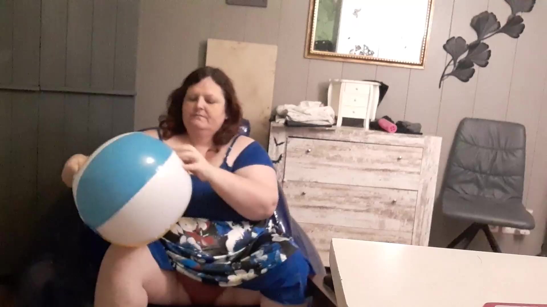Obese first-timer brown-haired like the attention her neighbour gives her so she rails his trunk on armchair