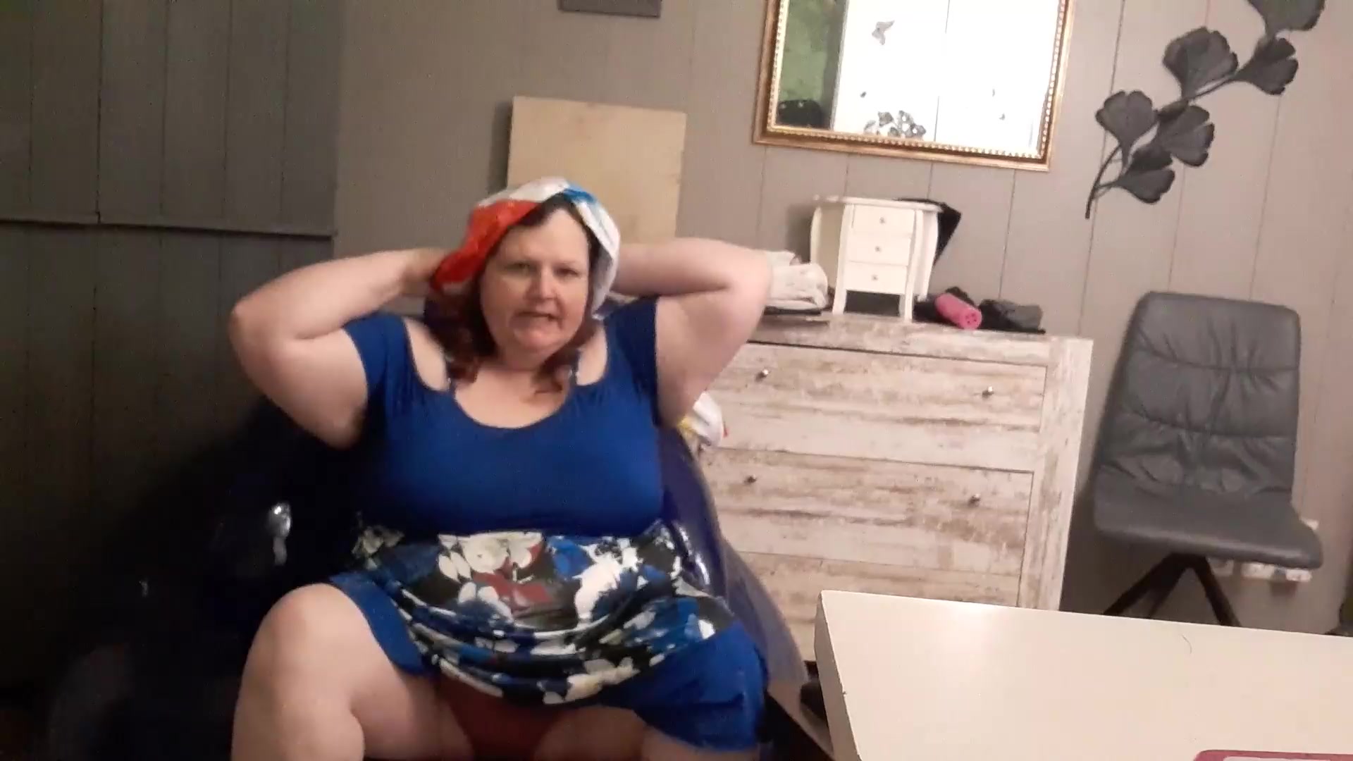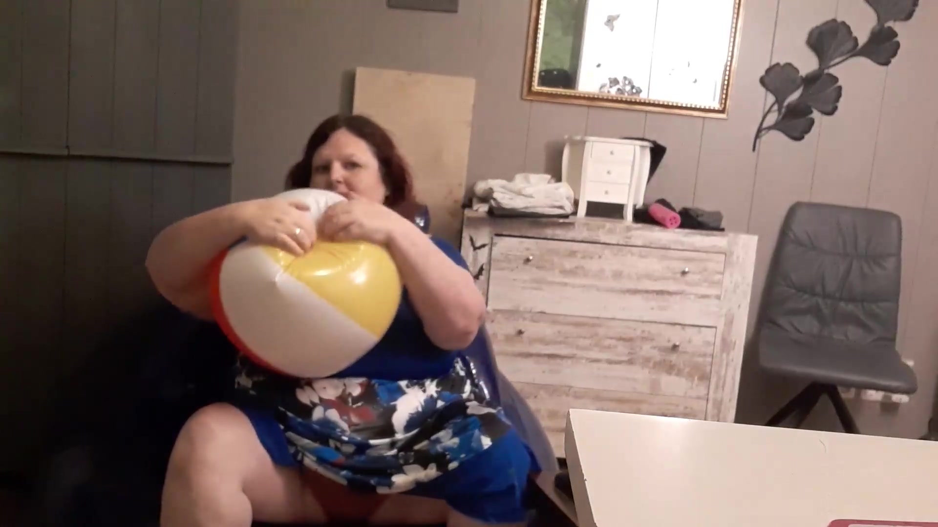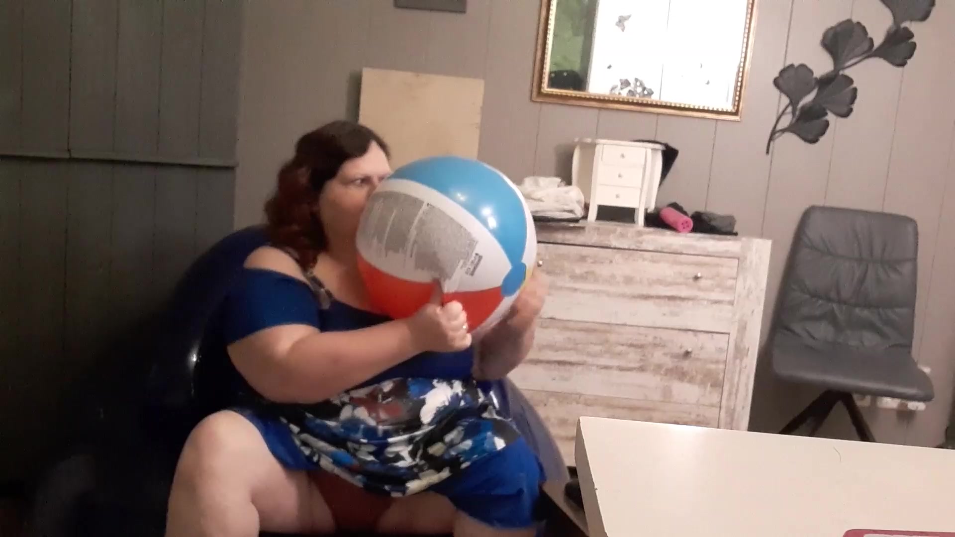 Obese first-timer brown-haired like the attention her neighbour gives her so she rails his trunk on armchair