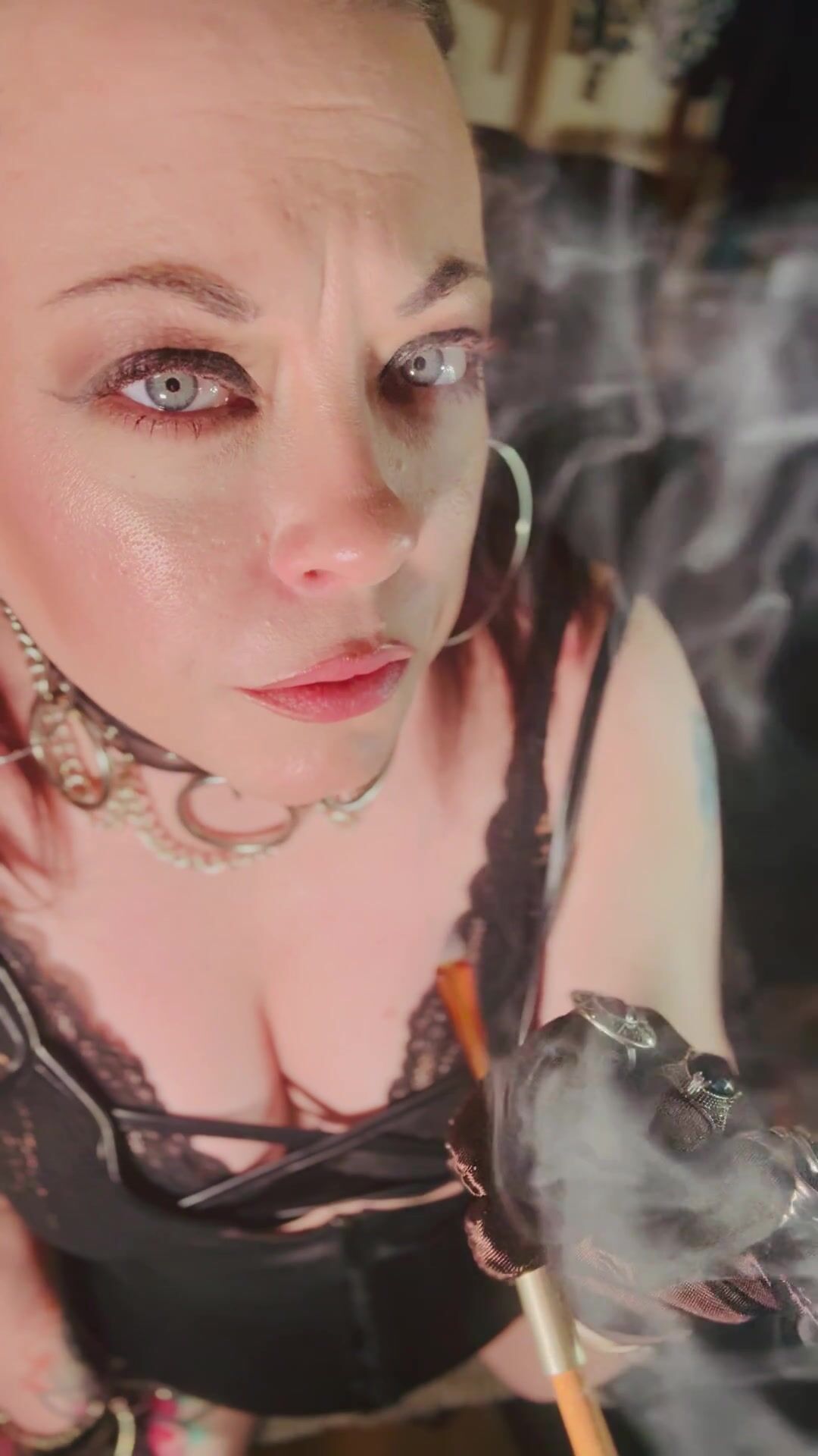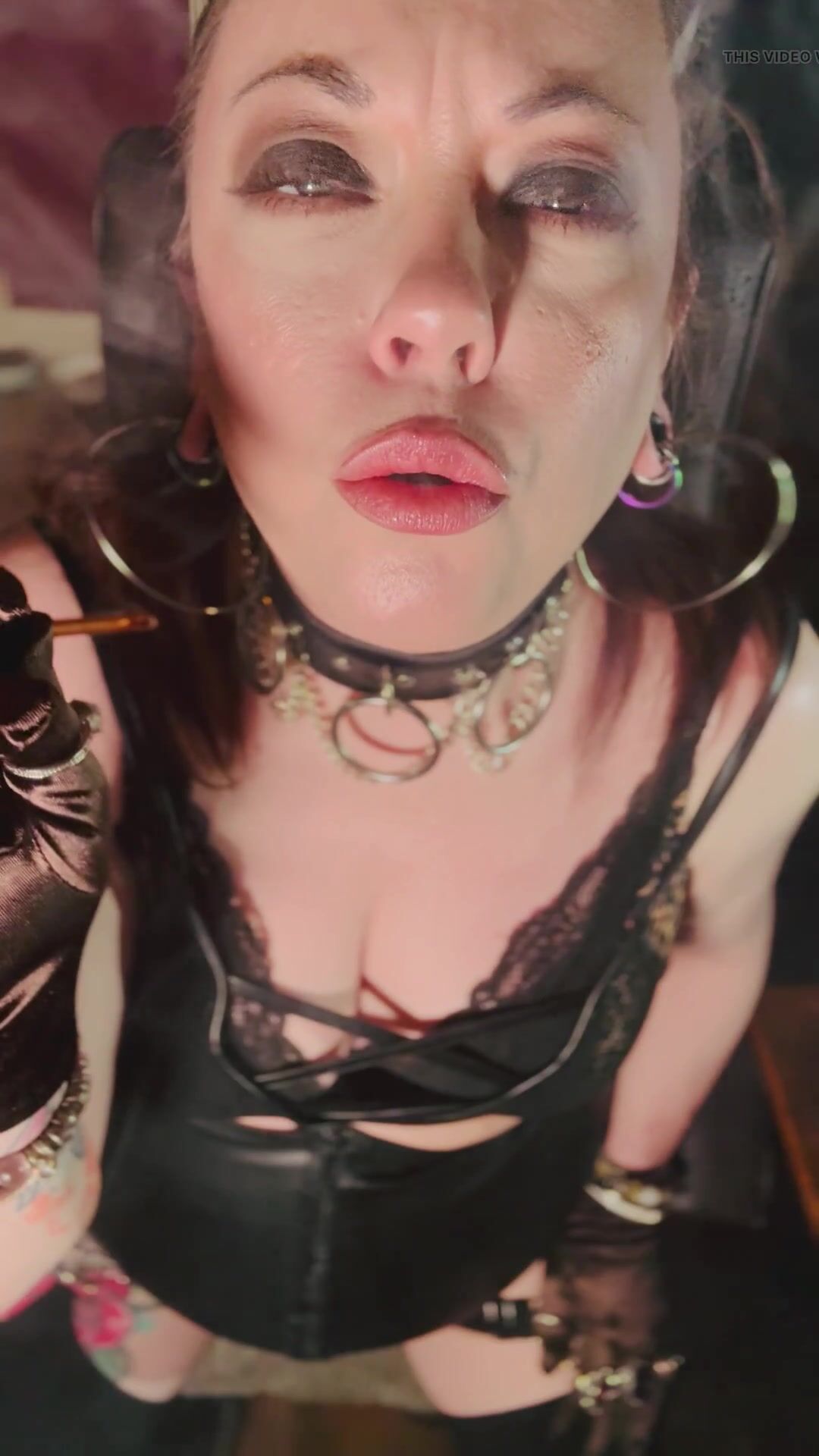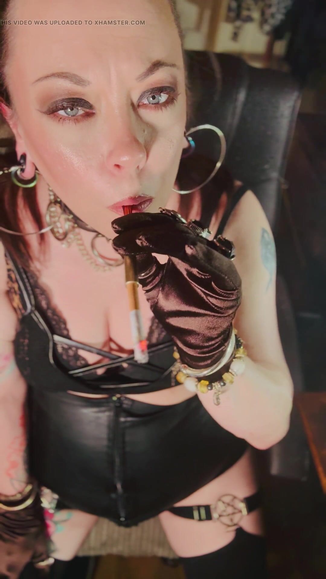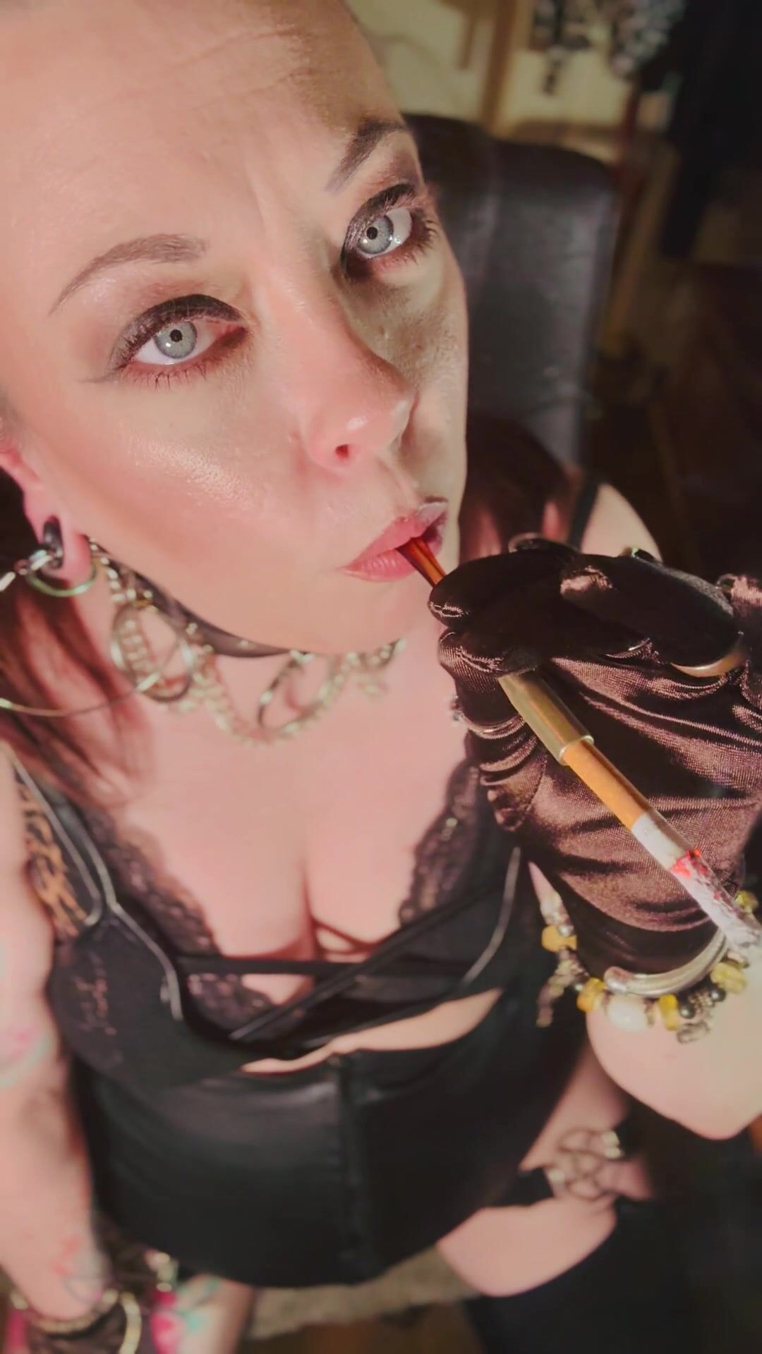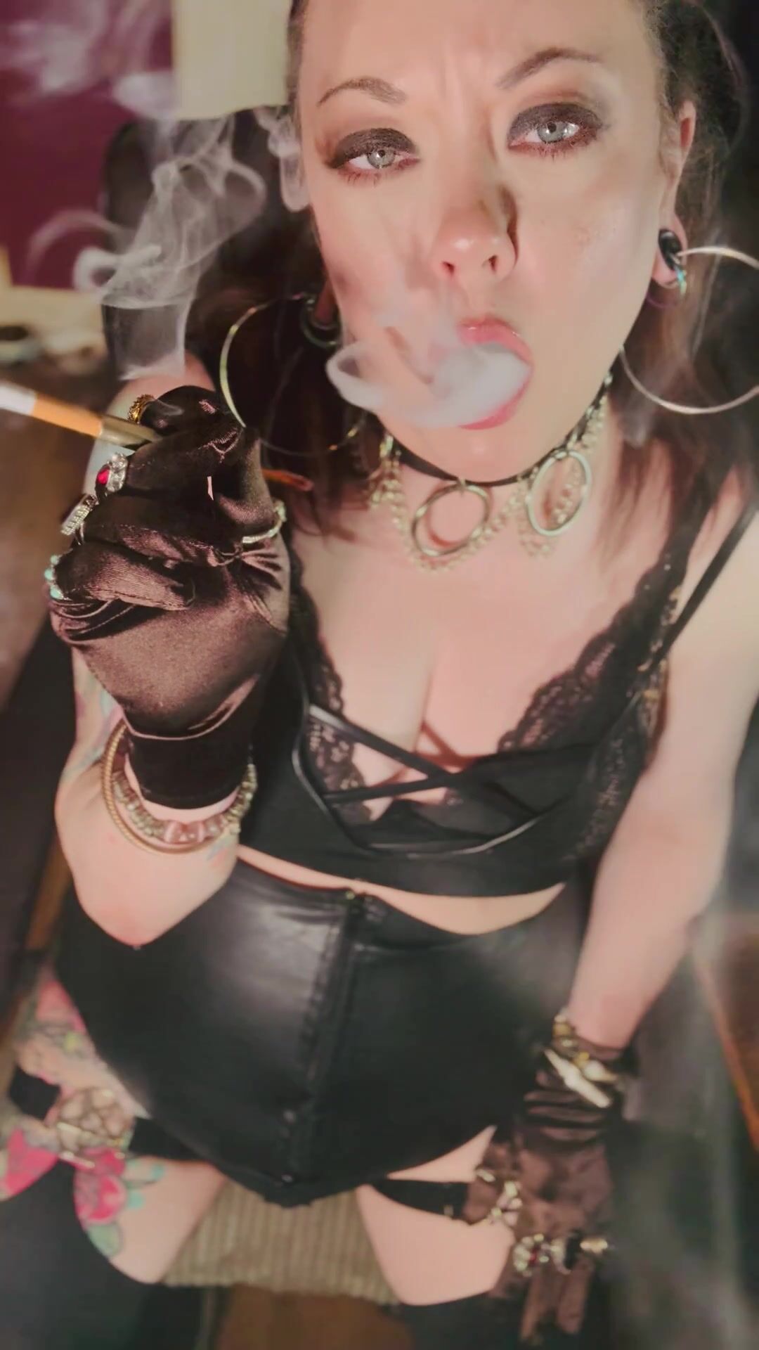 This Punk Female, Tina Snua, Smoking A Ciggy In Satin Mittens & Jewellery - Smoker Goth Smokes