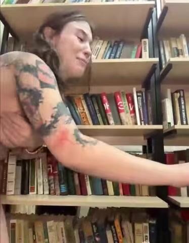 A Woman Fully Unwraps And Faps In The Public Library