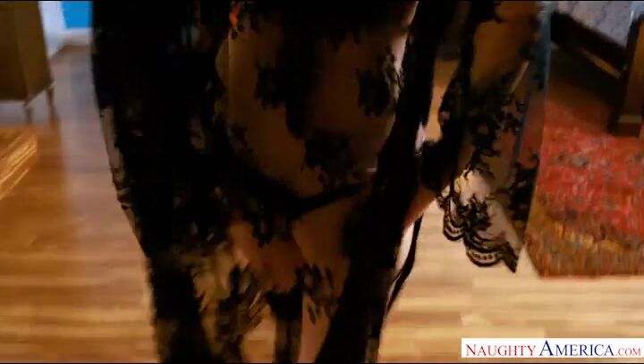 Racy dark haired in pinkish fishnet garment, Brenna Sparks opened up her gams broad open and got analed