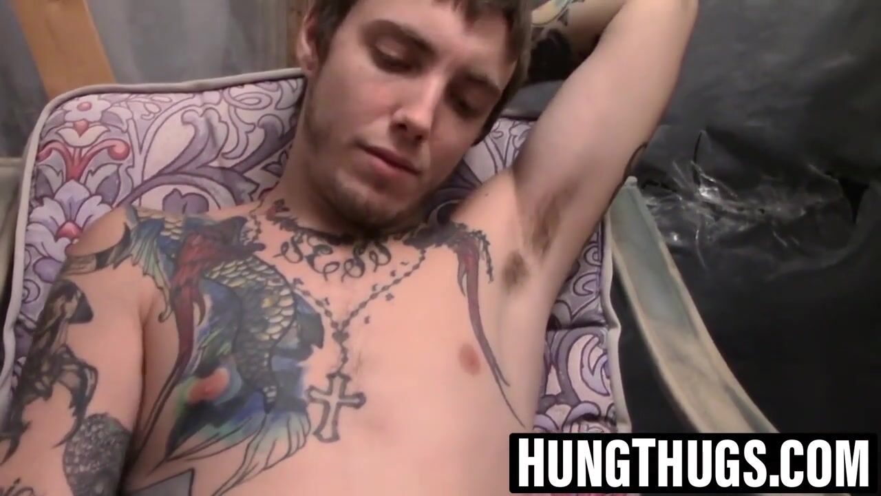 Killer and tatted hetero jock Blinx taunts and strokes his firm unshaved manstick in a sultry solo.