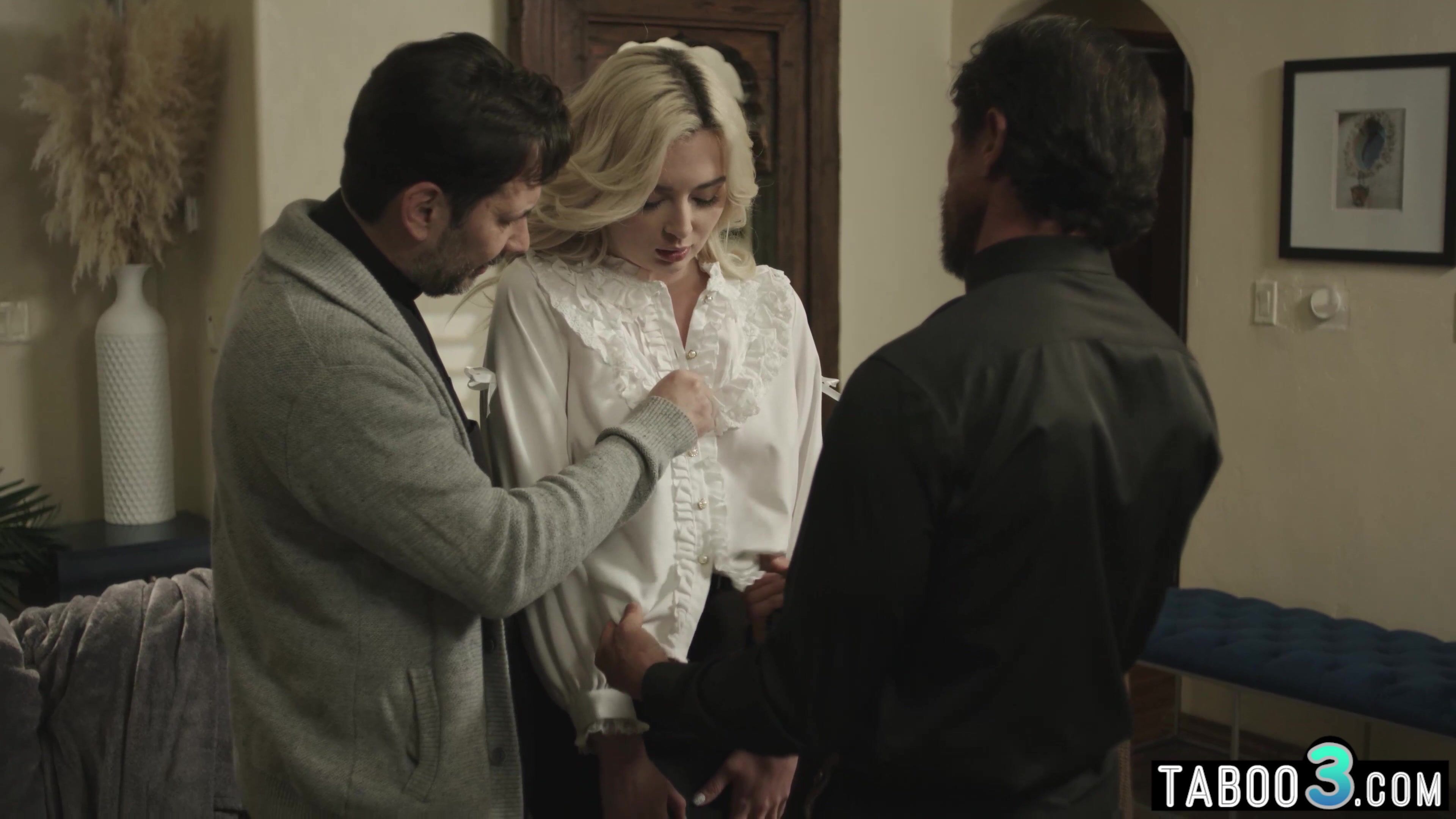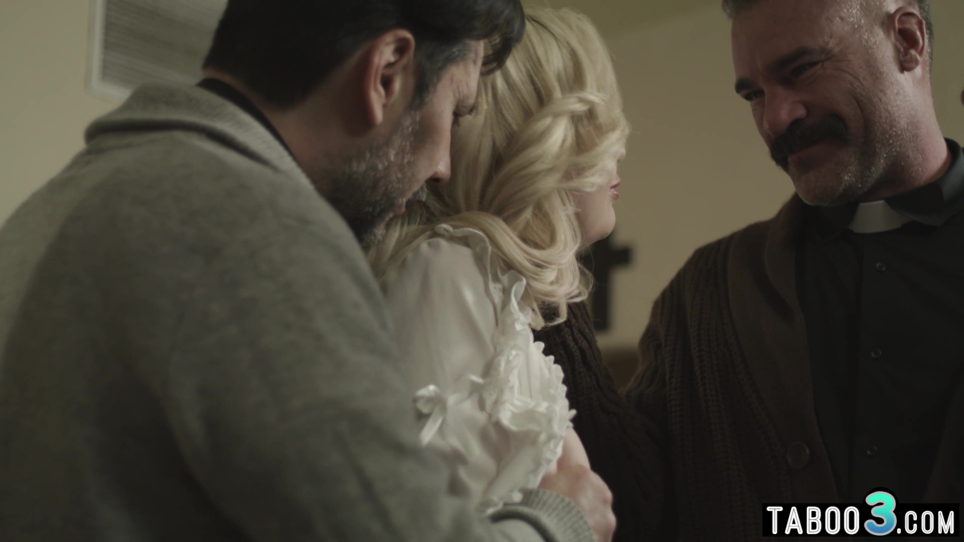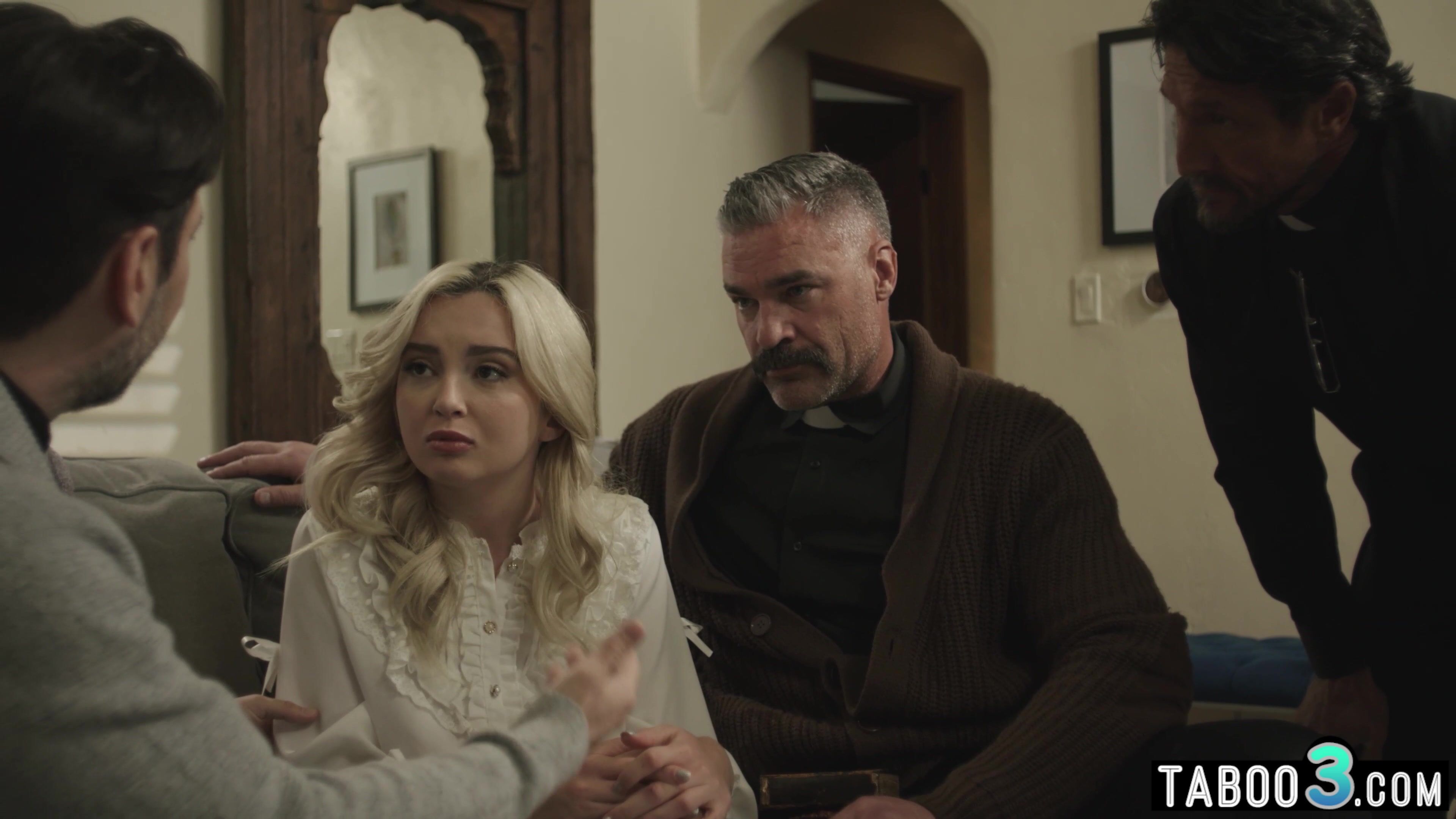 Teenage Lexi Lore has lewd thoughts so she visits a priest and asks him to display her the right direction but the freak dude and his 2 guy priests are manipulating her by saying her that they can purge her of muddy thoughts by having fucky-fucky with her