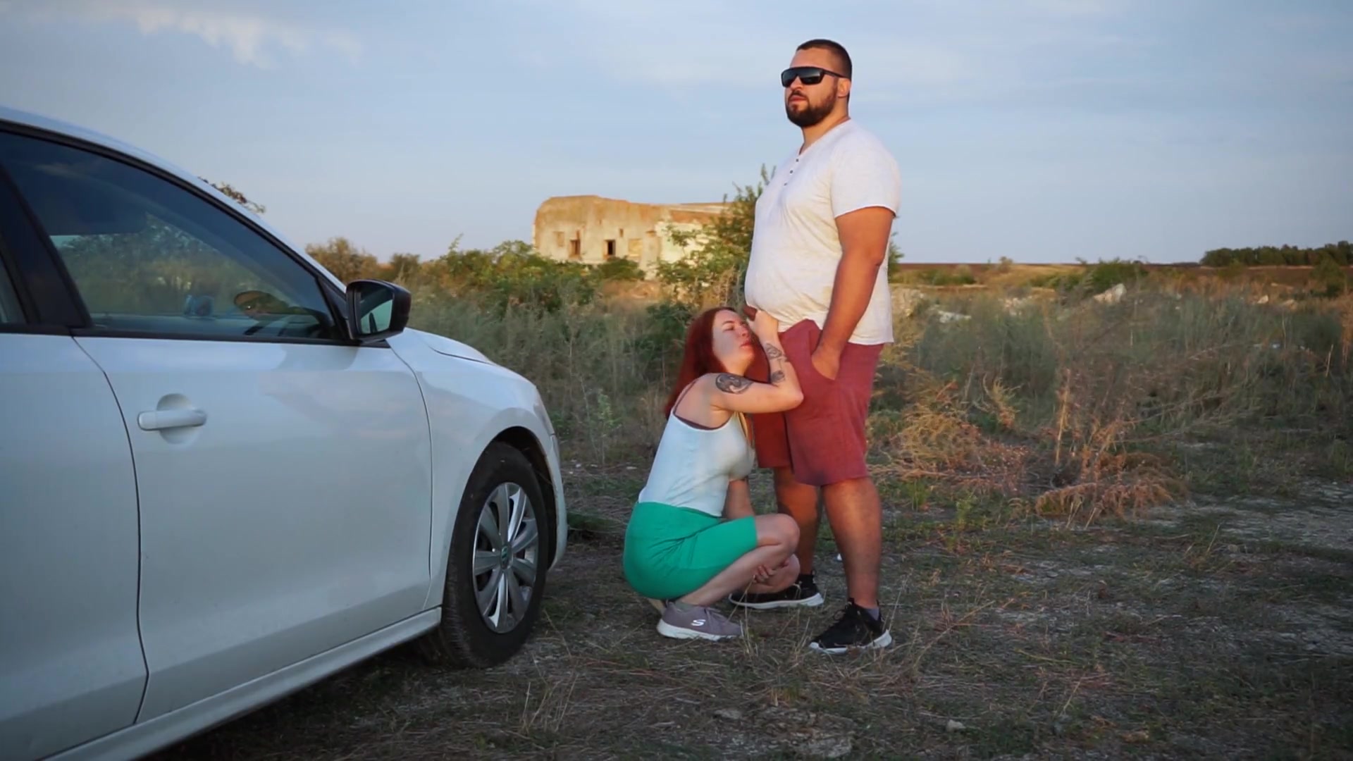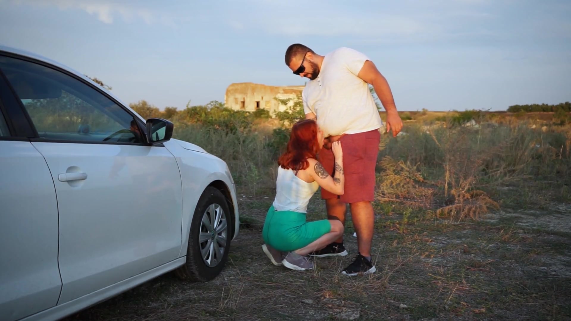 Outdoor deep throat and hj