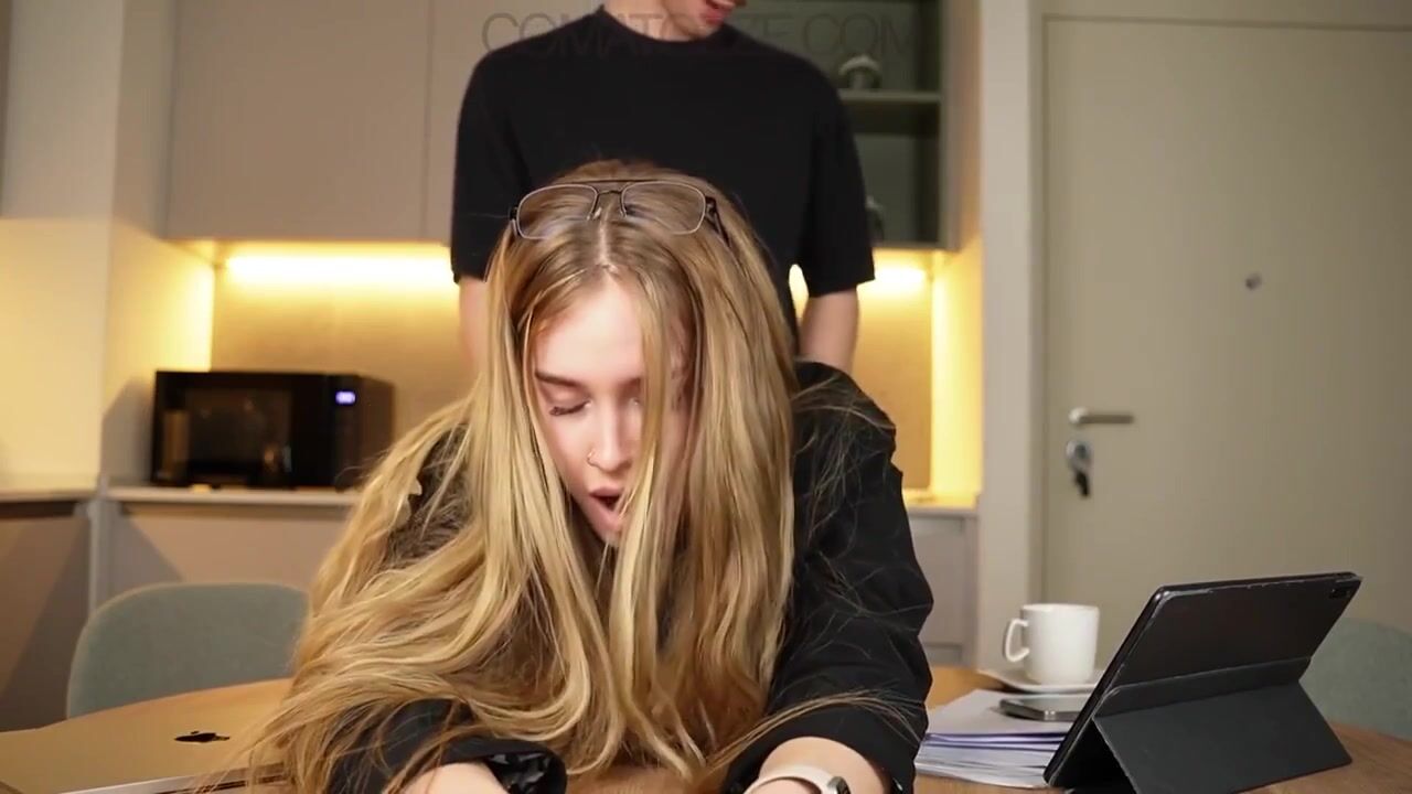 Office assistant spurting on kitchen table after a lengthy day at work - TALK WITH ME: blondikva.hot4cams.com