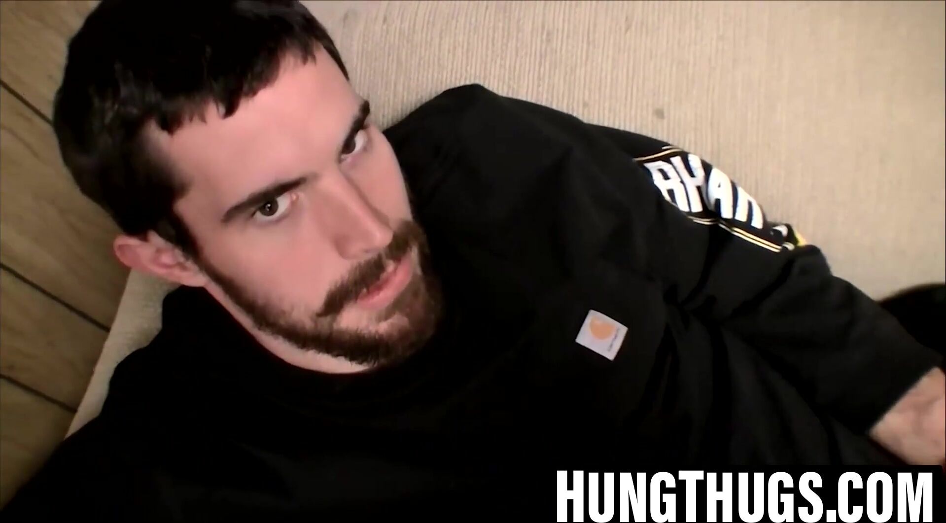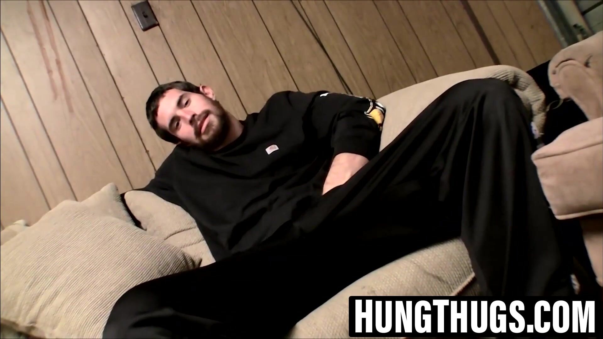 Bearded beefy Hunter drains off solo for his greedy devotees