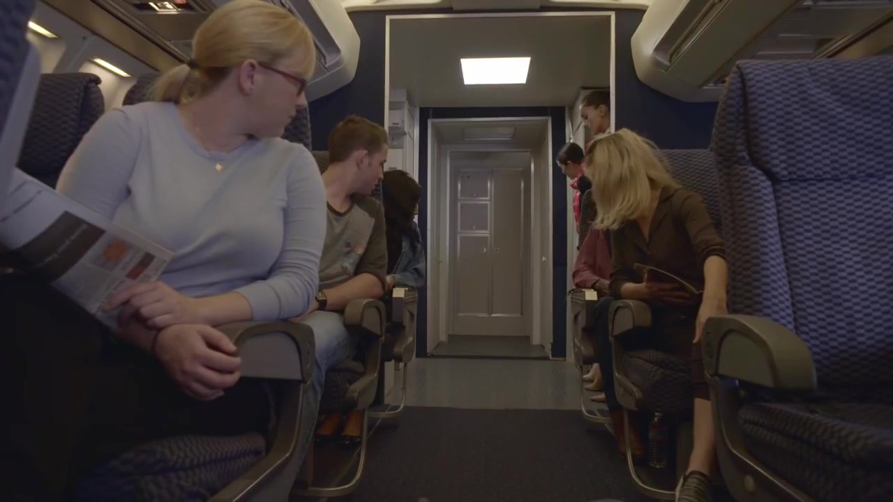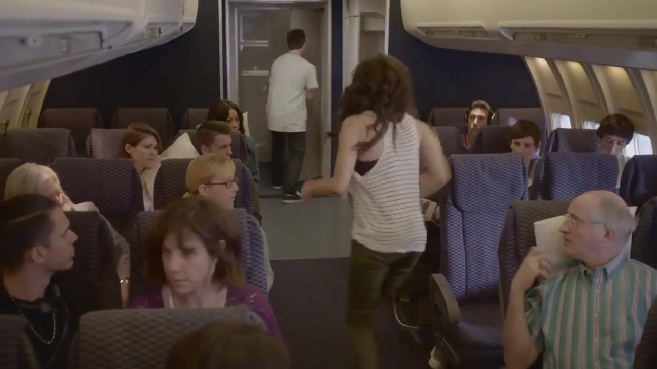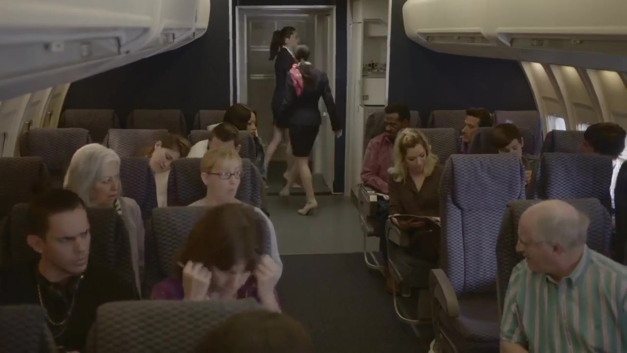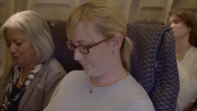 Blondie stewardess, Riley Evans is groping a customer's boner on her very first working day in the vapid