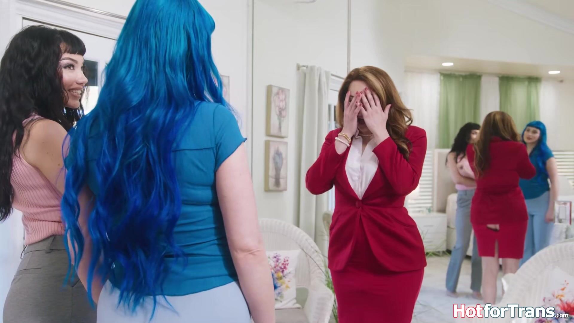 Buxomy duo Jewelz Blu and Lil' Puck take the mansion and want transgender princess Ariel Demures meaty trans meatpipe to feast.The good-sized boobies tgirl is deep throated off and facesits to get her booty butthole licked by the cougar whos fuckbox tongued.The brazilian t-model buttfuck barebacks them