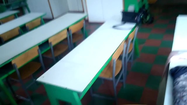Phat jugged dark haired is getting smashed in the classroom and attempting not to scream too noisy