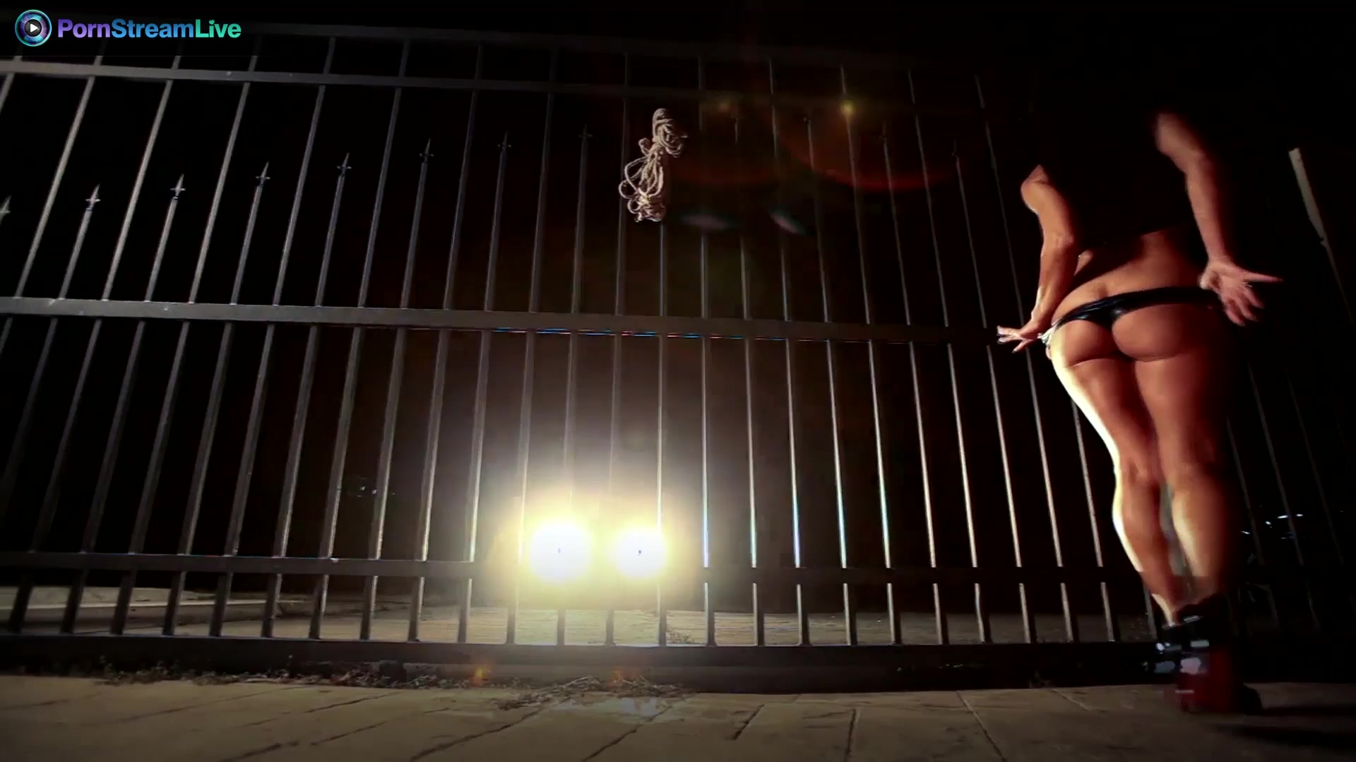 This is definitely one of the coolest solo video we have ever seen. It features the one and only Sandra Romain as she was outdoors at the gate, teasing at the headlight. She knows how to pose well and tease her audience. You can see how she presented her lovely titties and her amazing pussy as she did a lot of poses to let her audience crave for more. The coolest is at the end as she let her tied up at the gate and started to pleasure herself. Love seeing her getting tied up while seeing her masturbating in front of the camera with the headlights on.