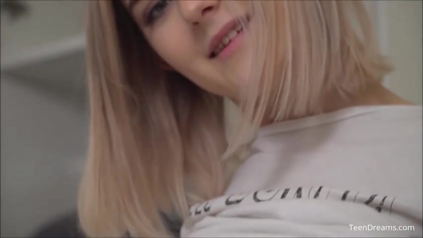 Slender teenager is attempting not to wail too noisy while tugging in front of the camera