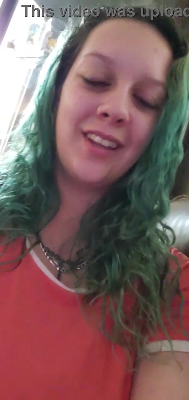 Green hair shemale jerks and plays with her butt