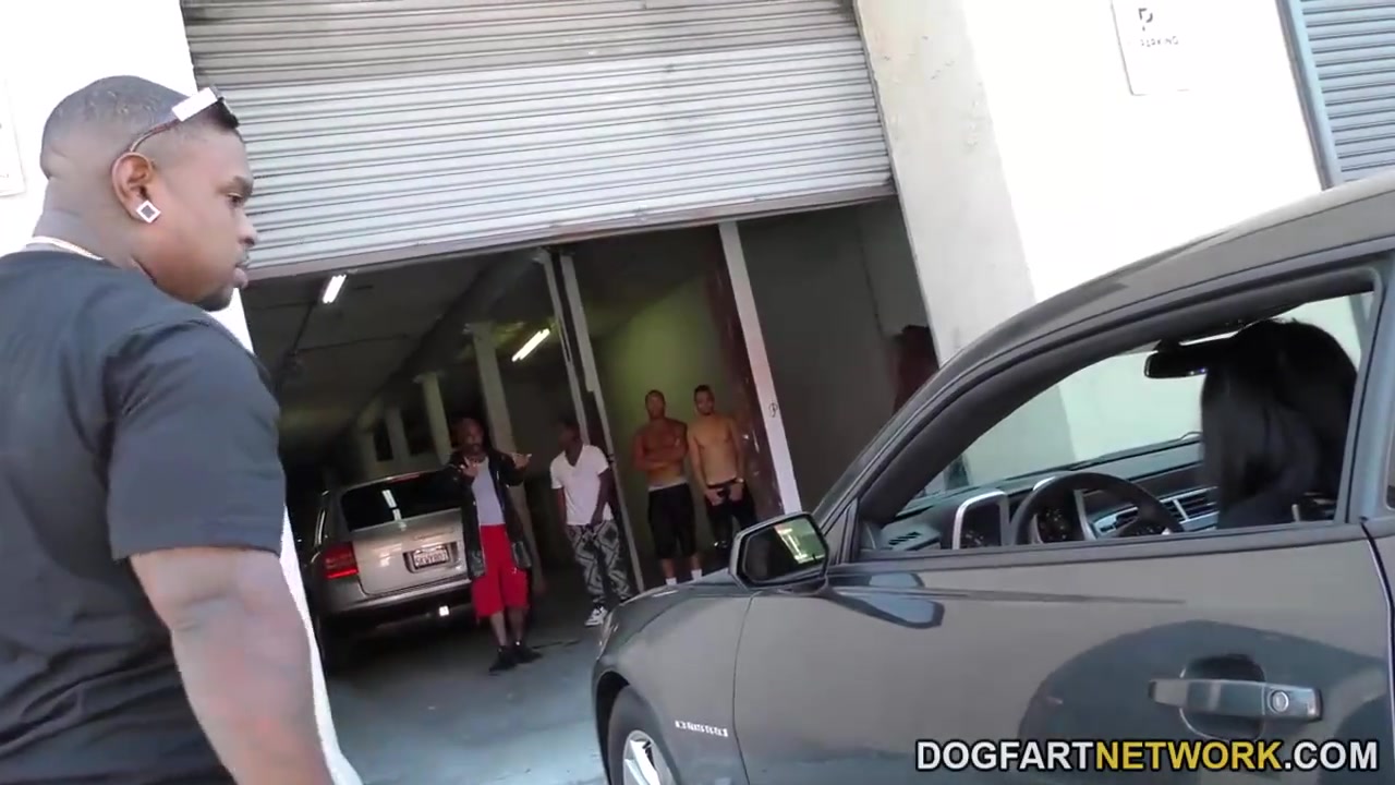 Ebony teenage with giant breasts got down on her knees to fellate many shafts in a row