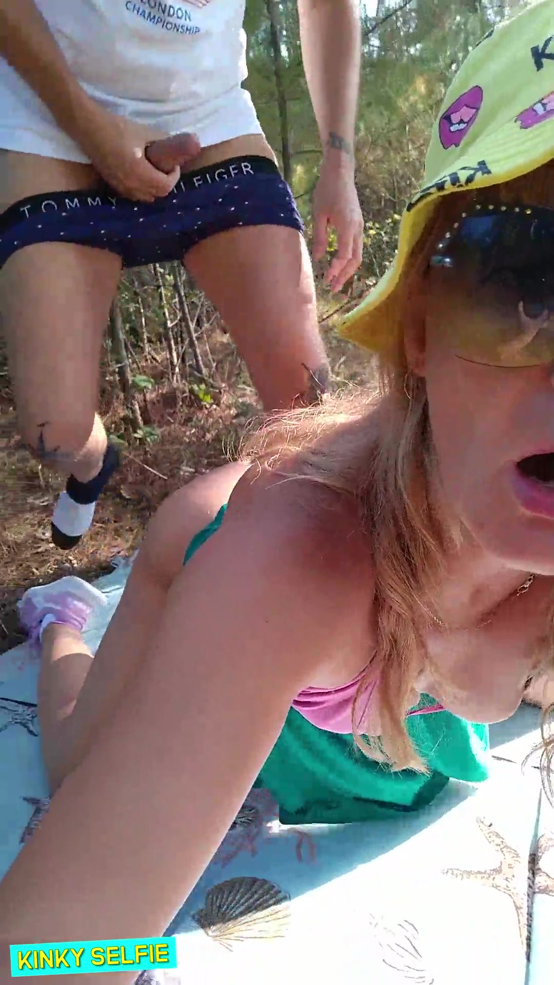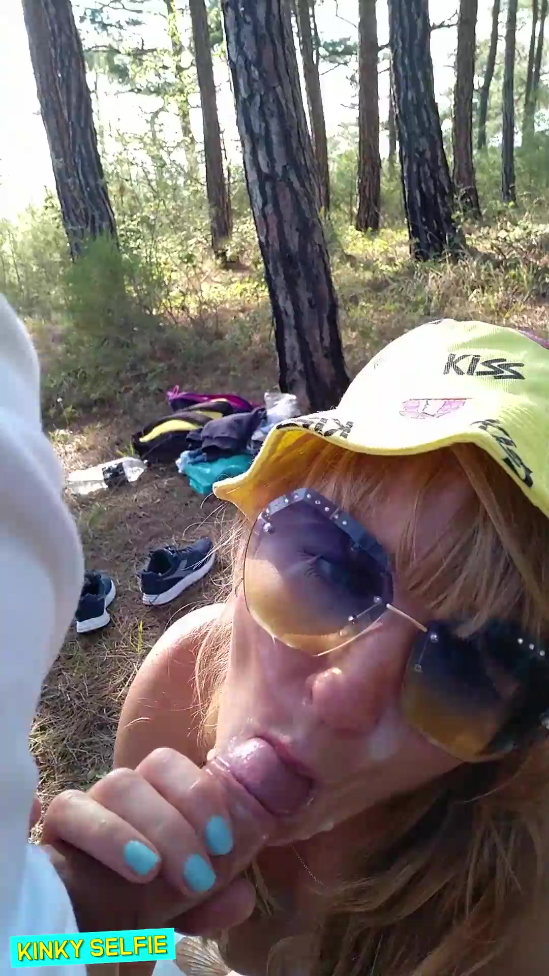 Mischievous Selfie - Fast drill in the woods. Blowage, Bum Slurping, Doggie-Style, Jizz on face. Outdoor orgy