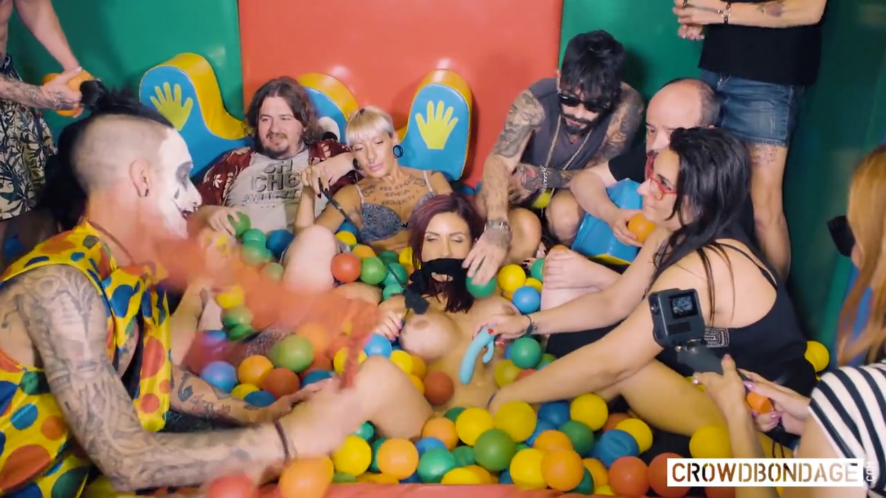 Tattooed minx Amina Danger gets restrained and tortured in a ball pit. The crowd goes wild for her pain as she's getting spanked and covered in hot wax. Emilio Ardana joins the fun and rams this beauty hardcore as everyone's watching. Amina finally receives a warm cumload down her throat.