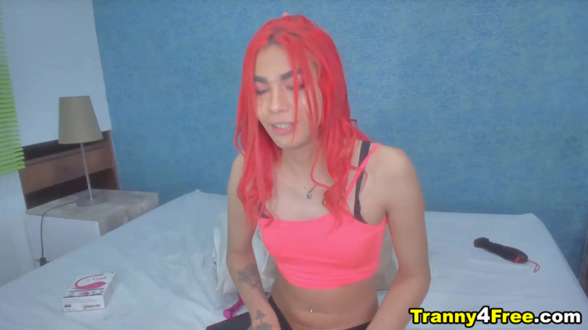 Hot redhead trans getting dirty and starts to finger her tight asshole. She insert her long fingers in her ass. Shemale wants to cum that she plays with her juicy hole and strat finger fucked herself in her live webcam show.
