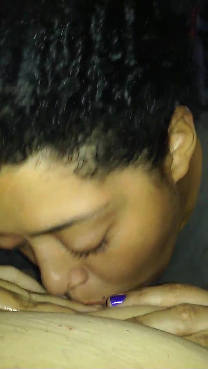 Half dark-hued cockslut providing blowage before going out