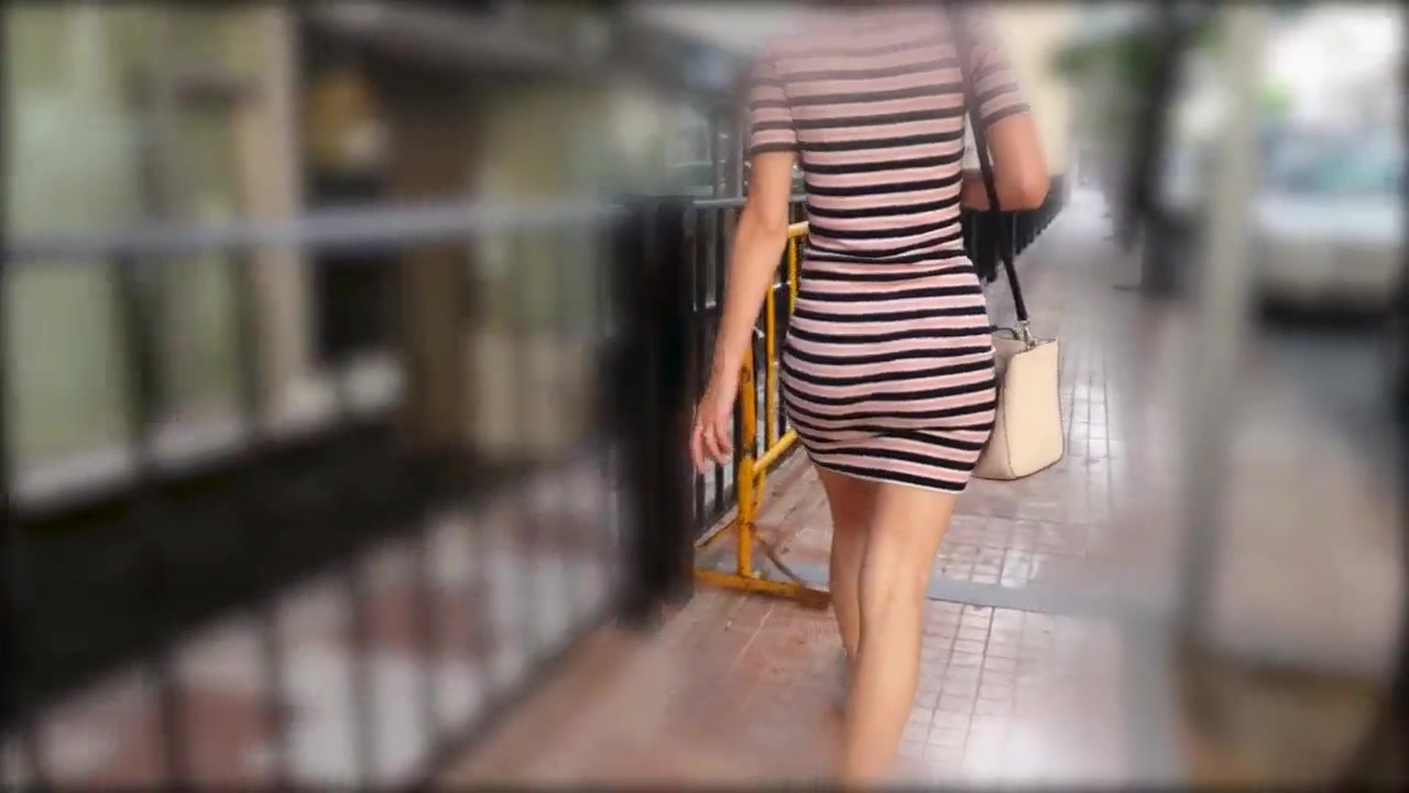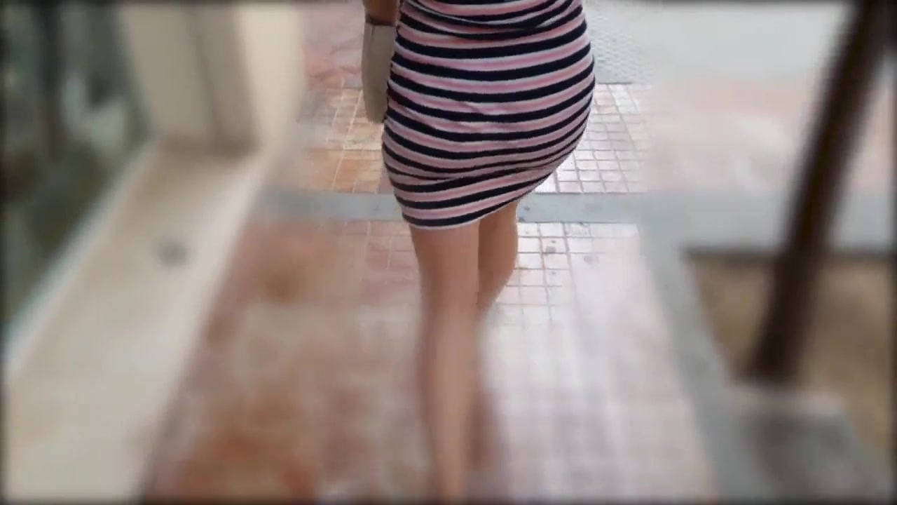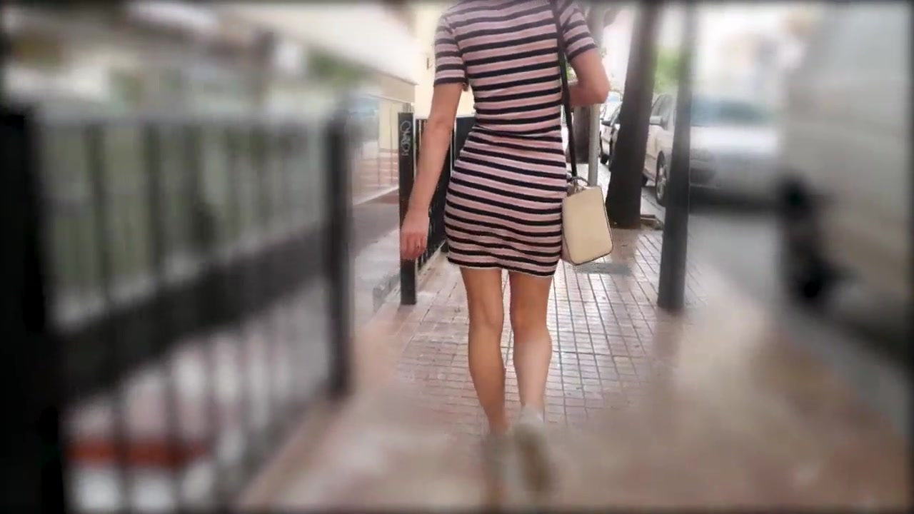Sweet Bum in Cock-Squeezing Leather Stretch Pants Ambling along the Coast Town
