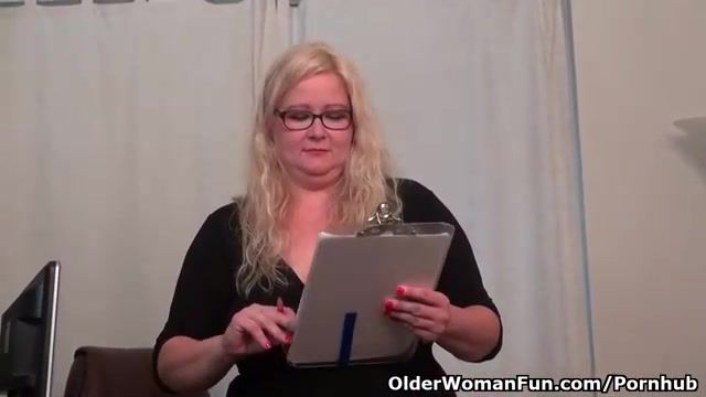 Yankee ash-blonde bbw, Faps enjoys to use a meaty, dark-hued fuck stick, even while at work
