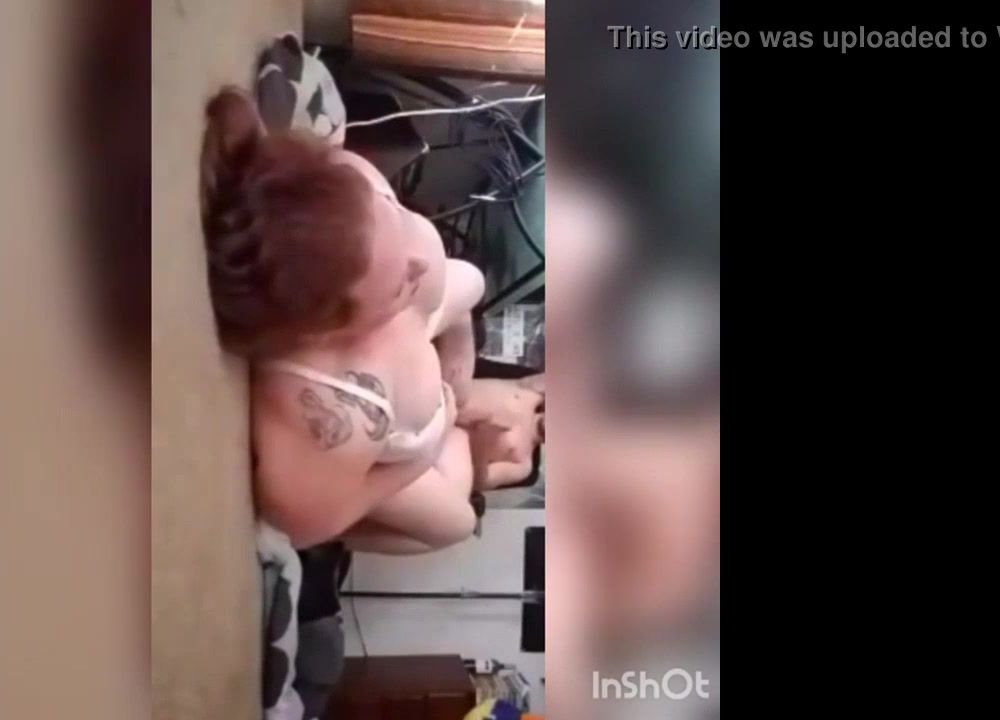 Obese gal is massaging her beaver instead of cramming clothes