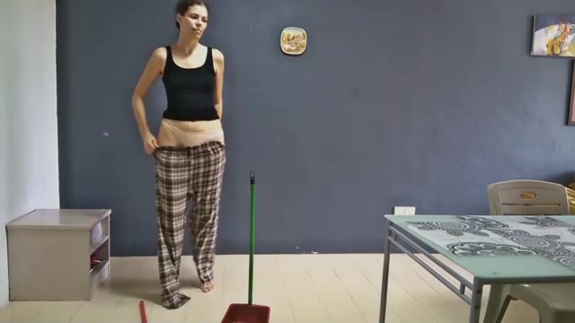 Puny breasted brown-haired is frequently urinating in the bathroom or in her trousers, because it senses fine