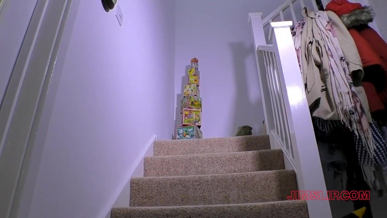 Thick breasted blondie is dressed in nothing but footwear with high stilettos while fapping on the staircase