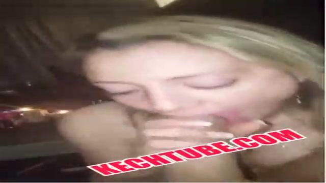 Sultry ash-blonde damsel with crimson lips is deepthroating a stranger's shaft, not even knowing his name