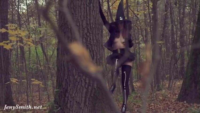 Take off my Halloween costume. Jeny Smith bare in woods