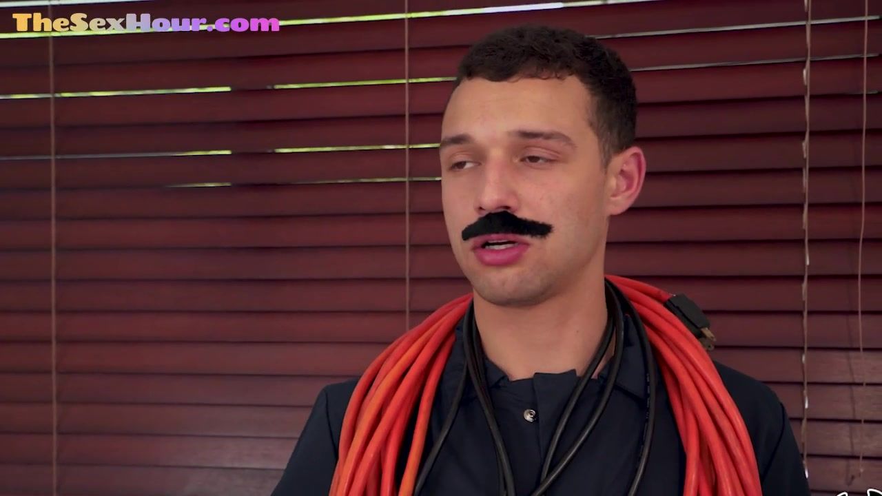 Redhead booty babe riding electricians cock