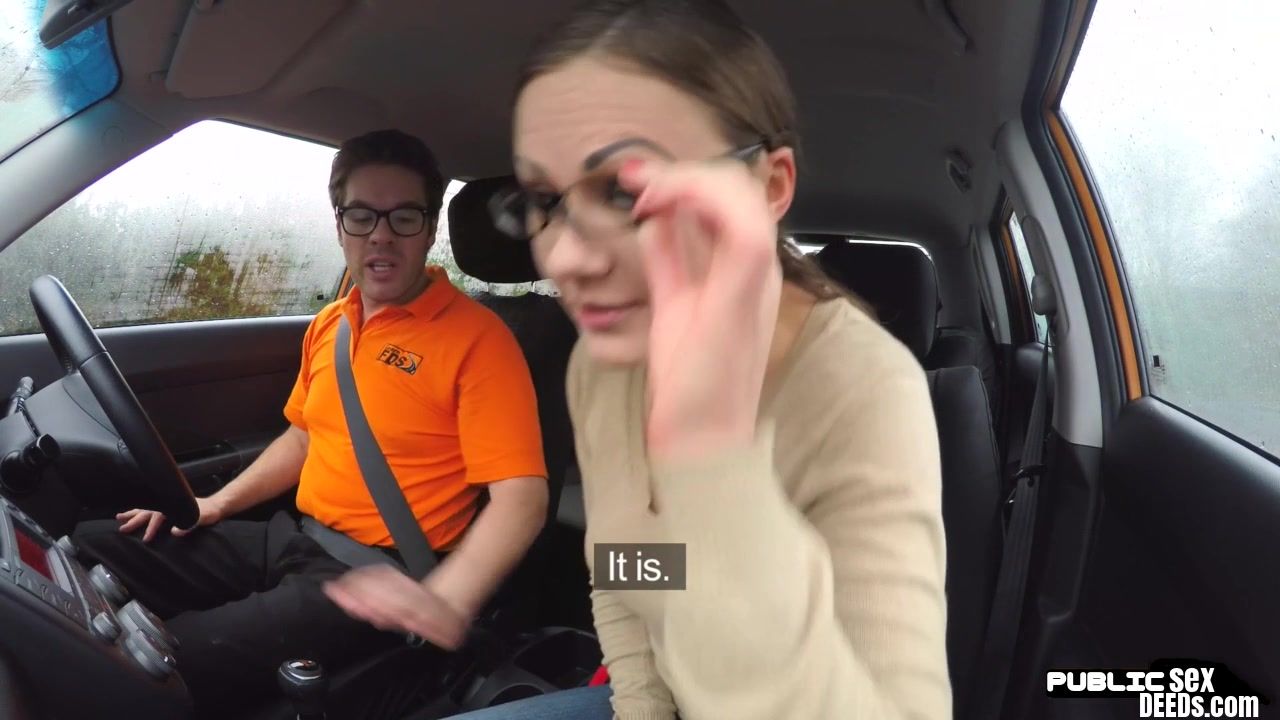 Public euro pussylicked in car during lesson