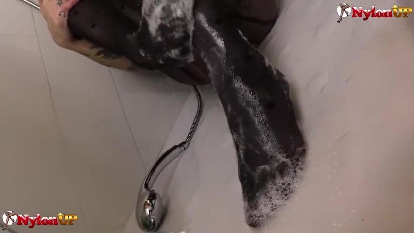Tatted chick with crimson hair, Onix Stunner is milking in the douche while dressed in softcore clothes