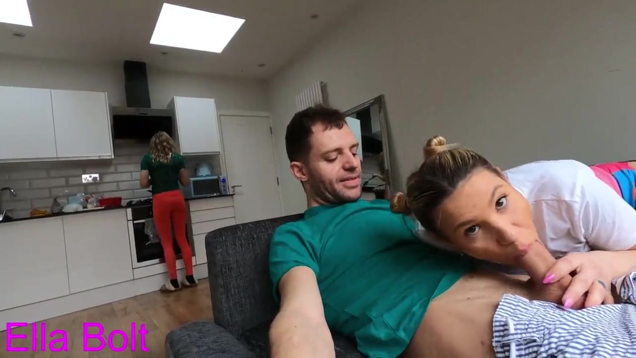 Risky Suck Off on Couch while their Pal Cooks. Giant Spunk at the end on Ella Bolt Face