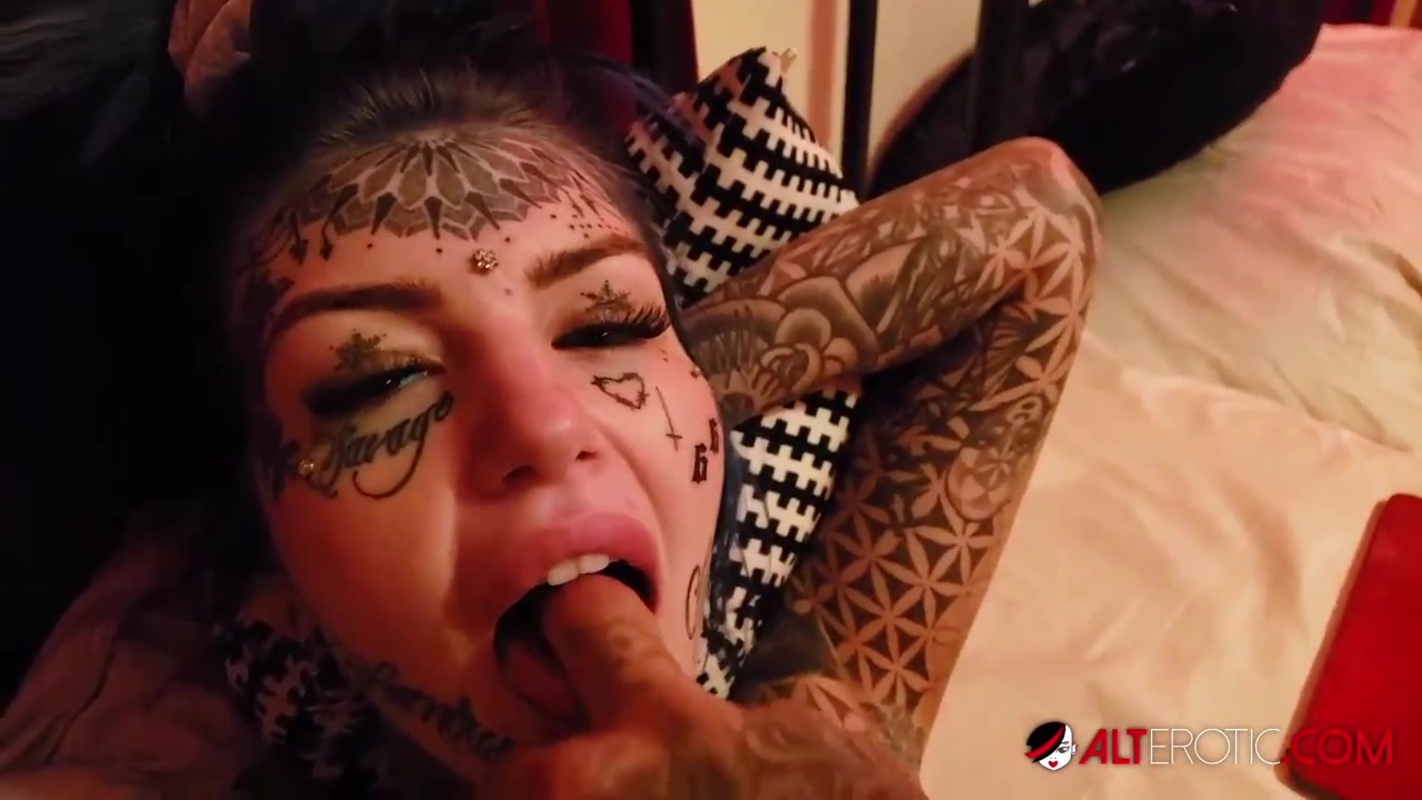 Tatted honey with blue hair, Amber Luke is getting poked to pay for a fresh tat