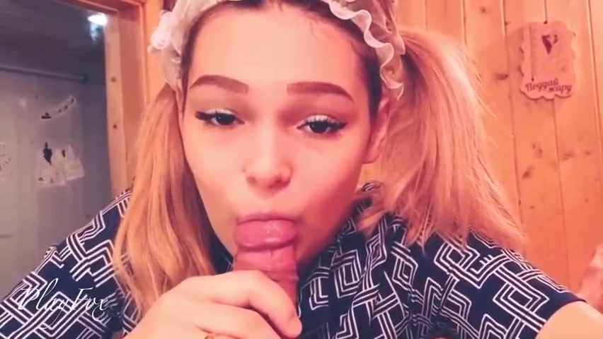 Uber-Cute lady is gargling a rock stiff weenie like a real professional and gulping geysers of jism