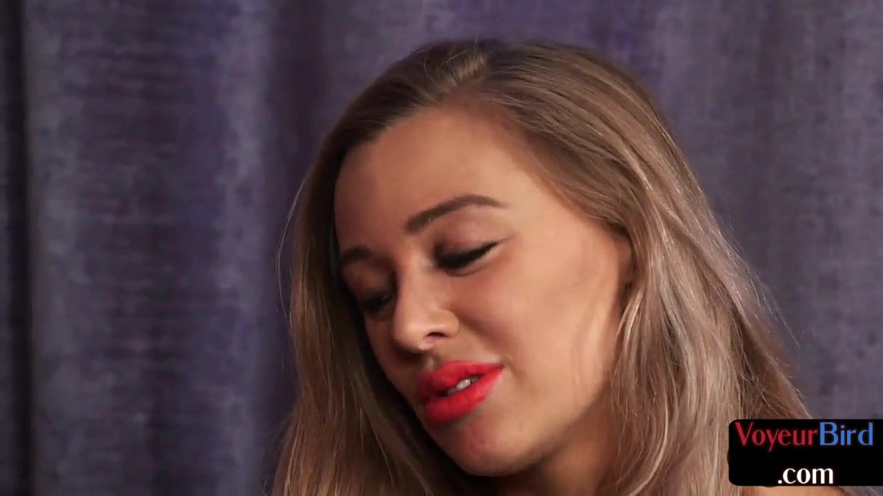 Lusty brit voyeur with big boobs strips and poses in lingerie for jerking subject