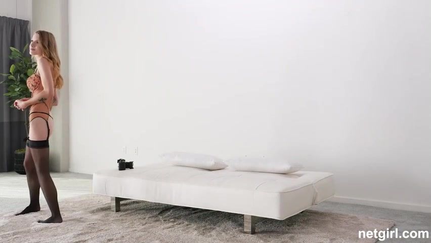 Jaw-Dropping ginger-haired wears tights and displays off gams and soles