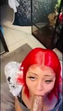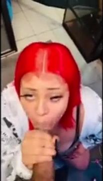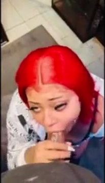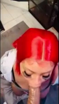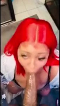Crimson haired boner cocksucker is wailing while providing a head to a guy she has recently encountered