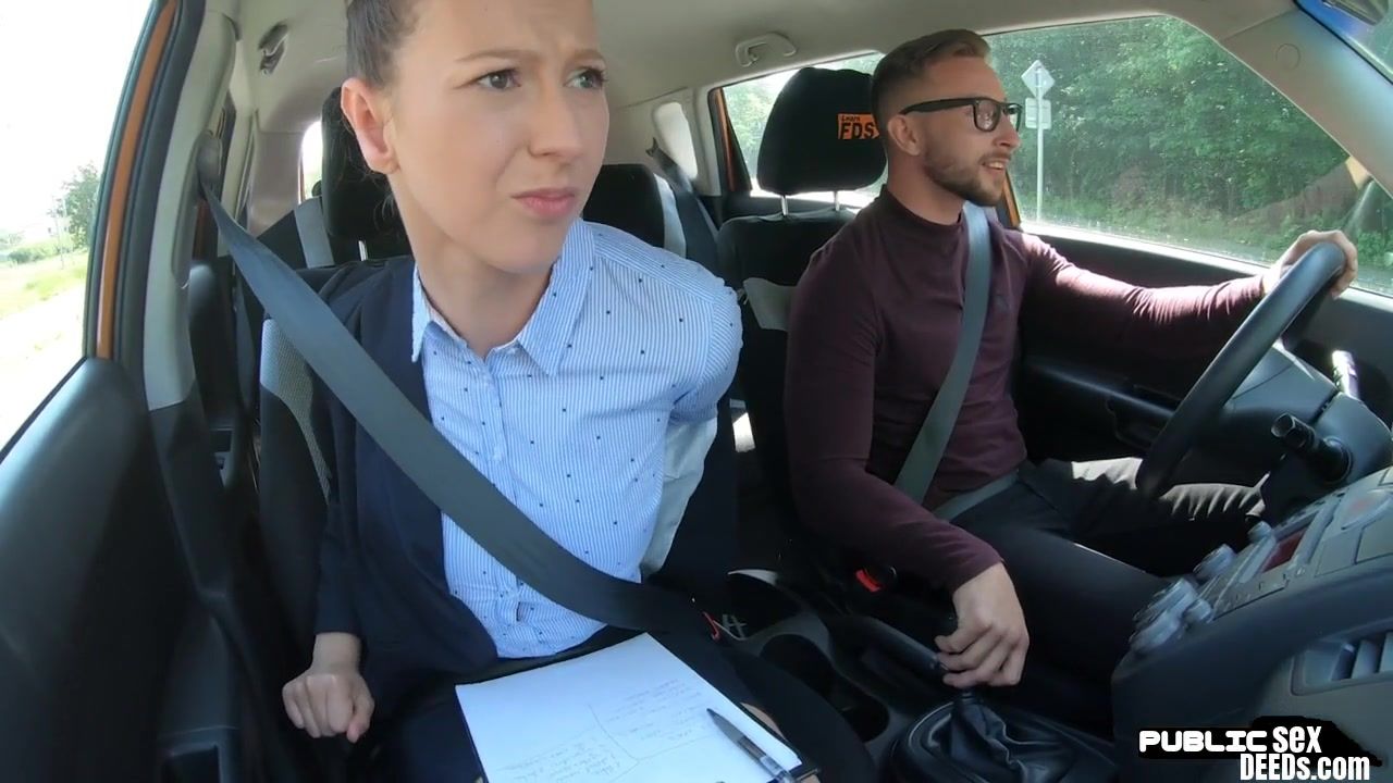 British babe publicly riding car instructor cock