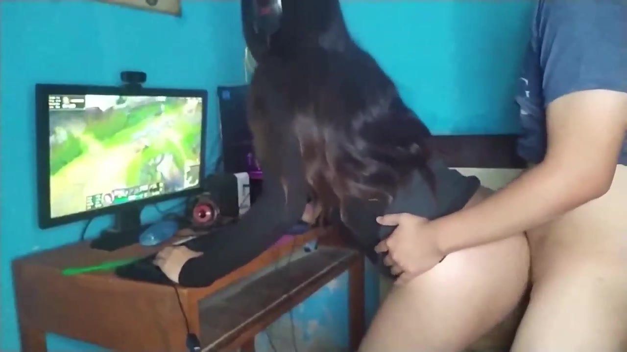 Nerdy blond stunner is frolicking her dearest vid game while getting humped from the back