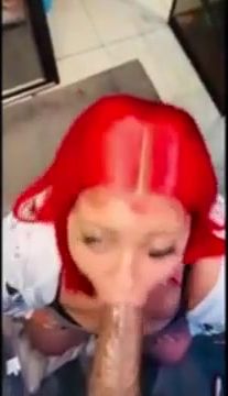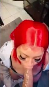 Crimson haired damsel is getting on all fours on the floor while throating a rock firm chisel, like a professional