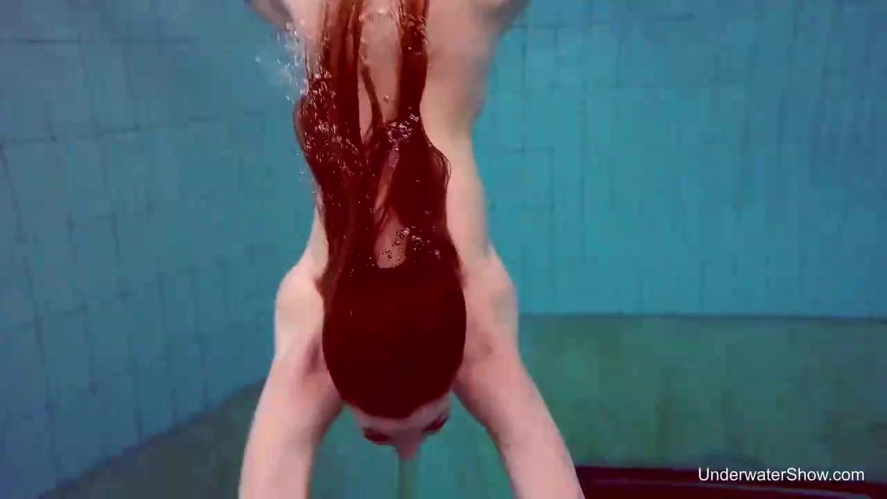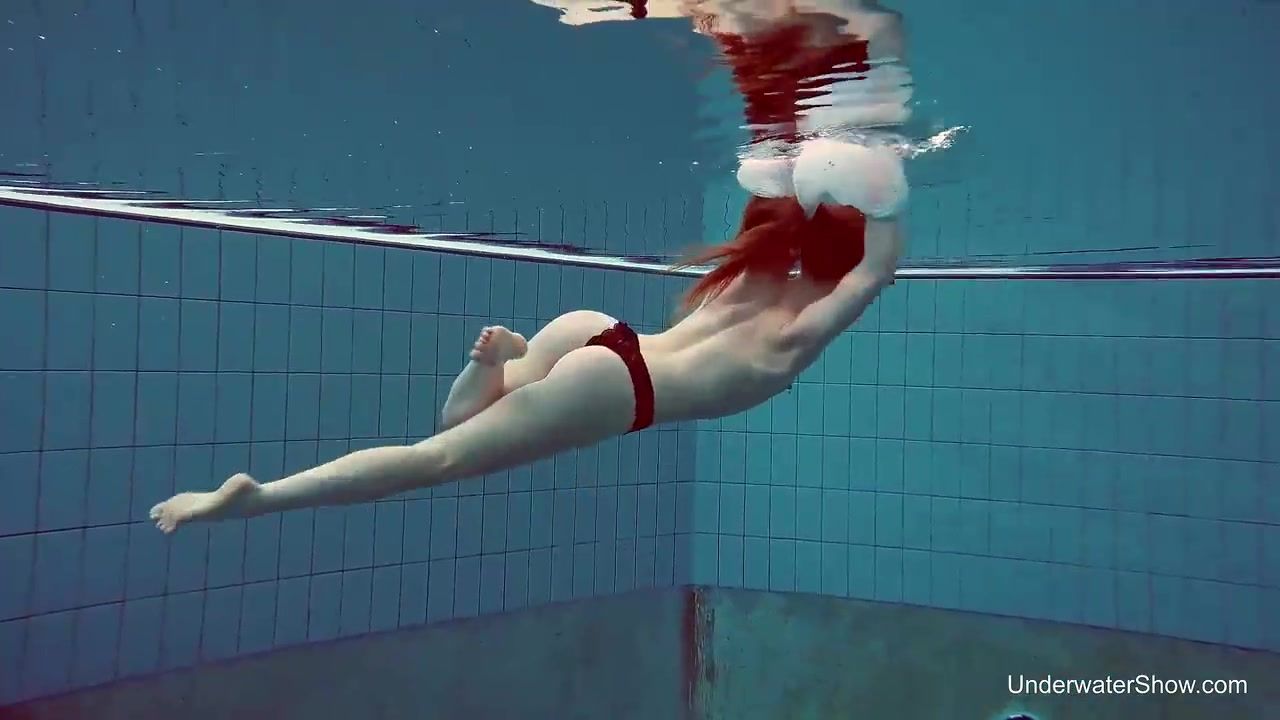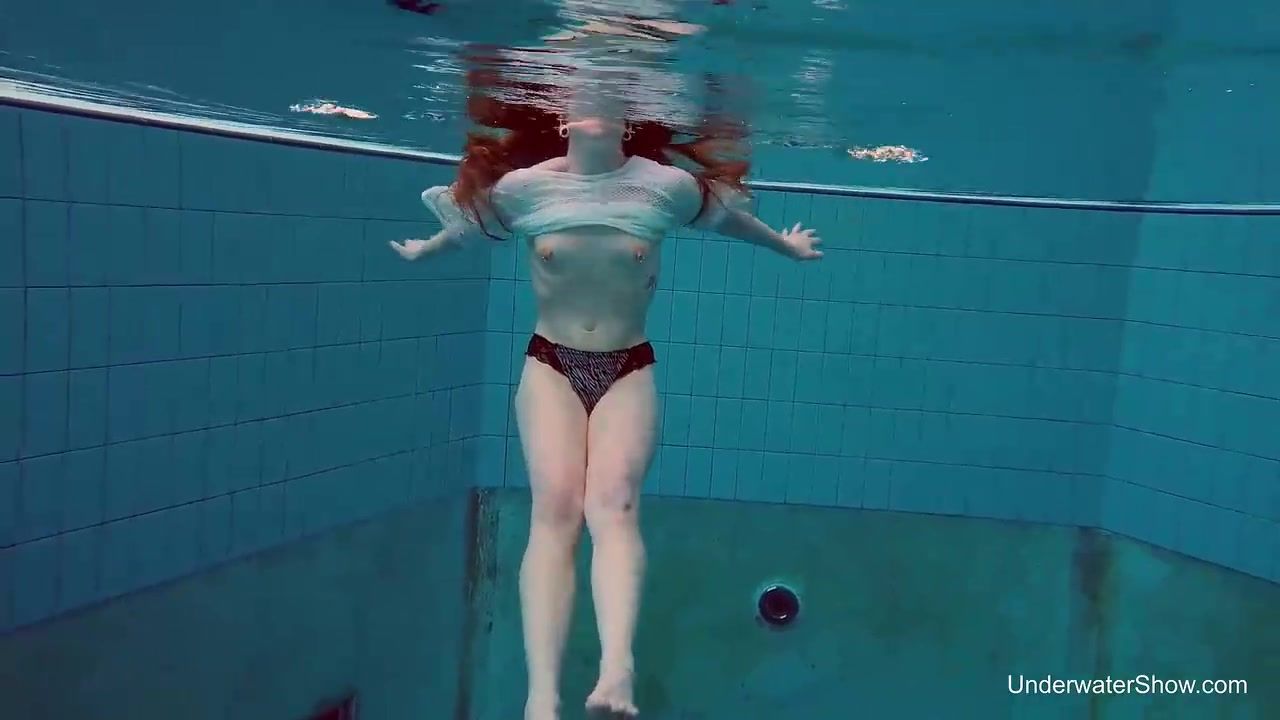 Crimson haired stunner, Nina Mohnatka got bare and stretched her gams broad open in the swimming pool