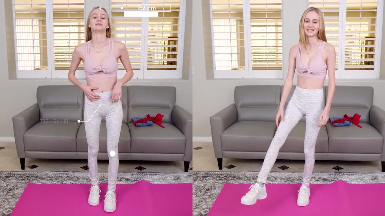 Puny nubile is about to get plowed from the back, instead of doing her exercise routine