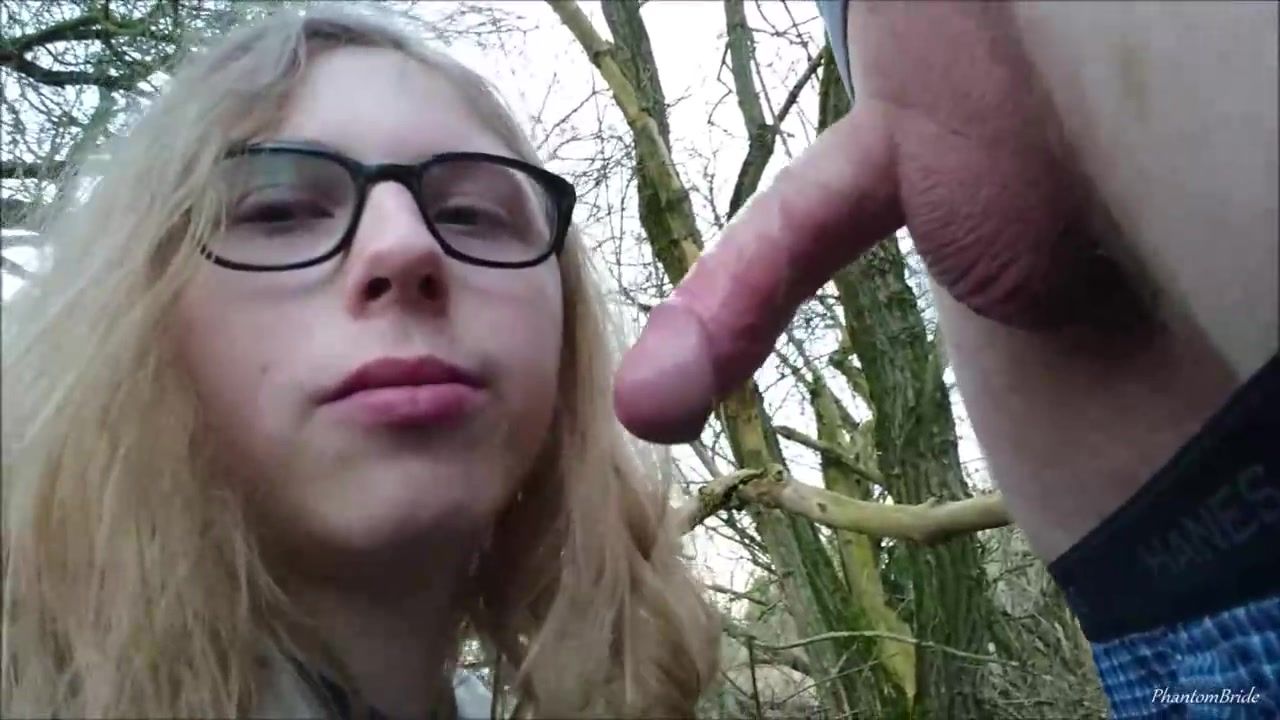 First-Timer ash-blonde with meaty, black glasses is deep throating stiffy in the nature, just for joy